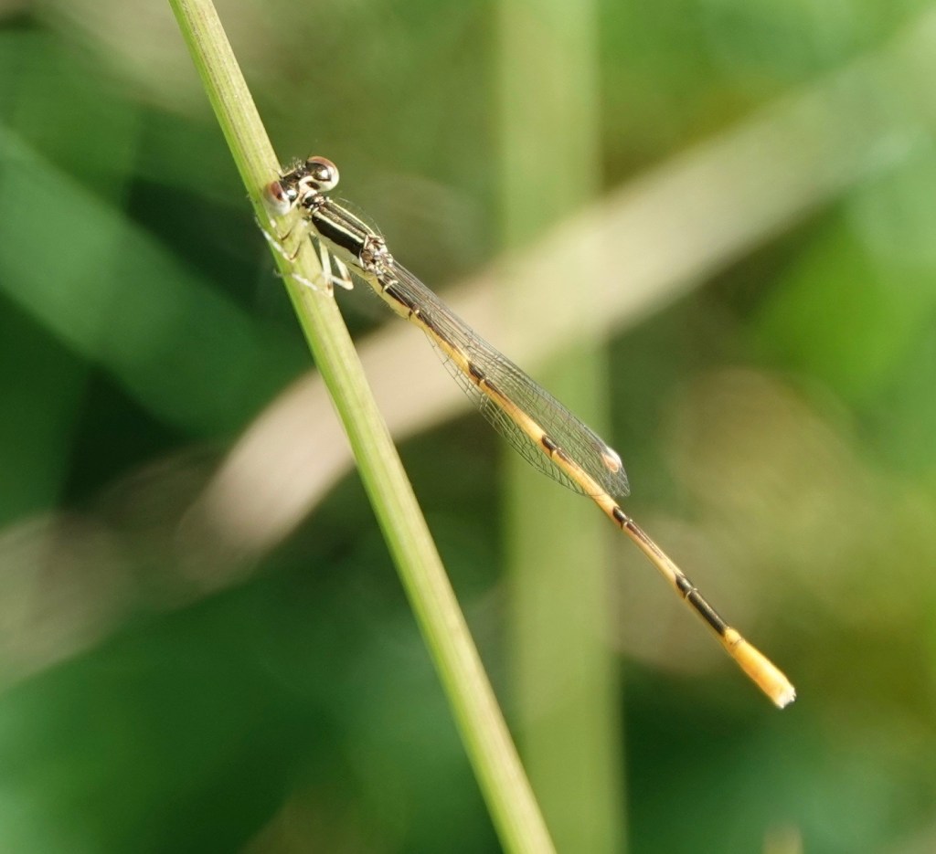 Ischnura hastata is one the smallest of the damselflies. They like “densely vegetated pond and lake edges, grass seepages, and quiet streams,” according to Ed Lam. The site at Brooklyn Bridge Park fits that profile. Green-Wood doesn’t. But the species also gets around: strays are sometimes found far from water. Sure, there’s water in G-W, but the nearest “Water,” as the ponds are called, is very orderly, completely without vegetated edges