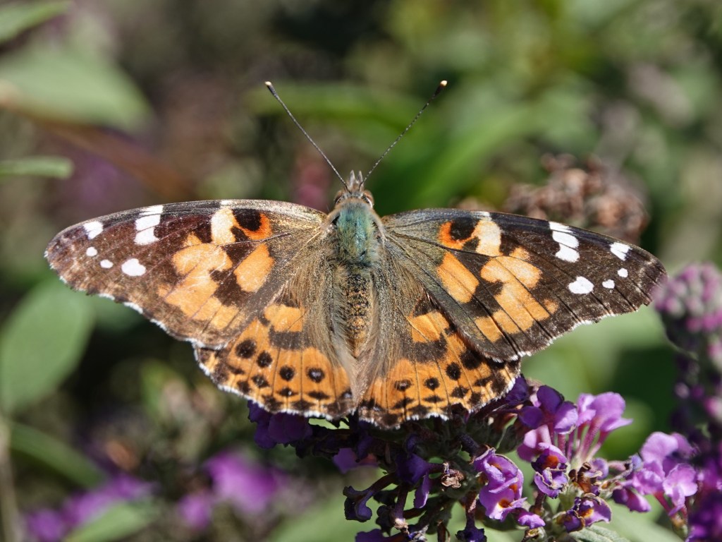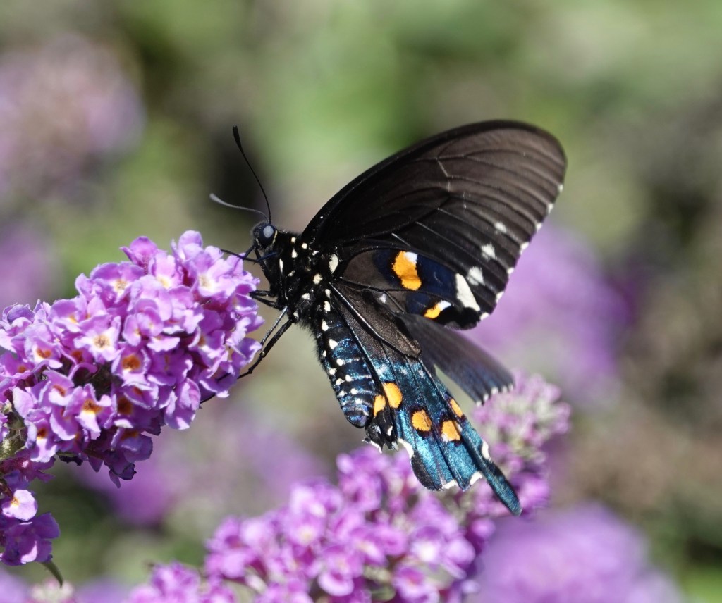 I meant to post this yesterday, but I screwed up the scheduling. It was 94F on Wednesday and the butterflies were busy. Yesterday dawned at 55F and the temp didn’t stray much from there all the daylight hours. Definitely not butterfly weather.