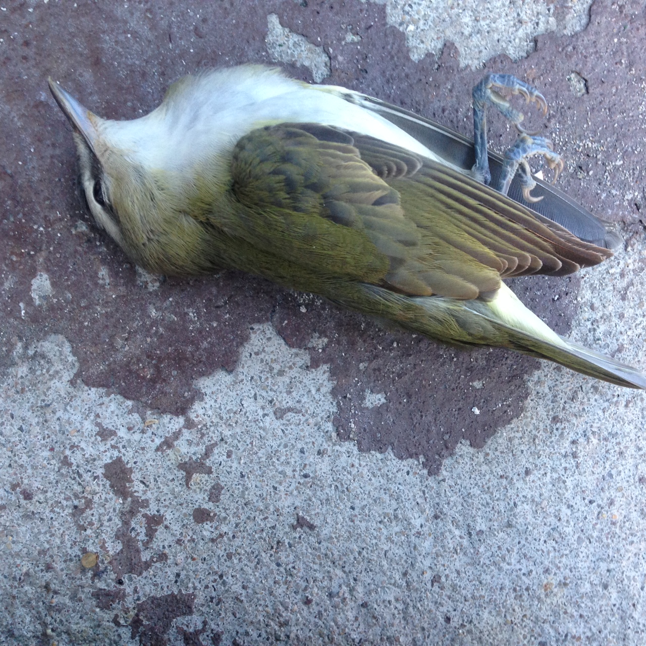 I reported this one there. It’s a Red-eyed Vireo. It was on the sidewalk right around the corner from the #ViewFromTheMoraine.