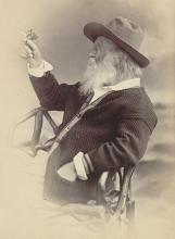 Recognize this? This was a surprise at the recent Whitman exhibit at the Morgan Library and Museum, where the image for the exhibit shows a famous photograph of the older WW holding a butterfly.