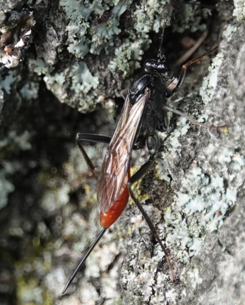 One of two similar ichneumon wasps I saw yesterday around the trunks of very large trees. I’ve never seen this species before. This is what keeps me looking.