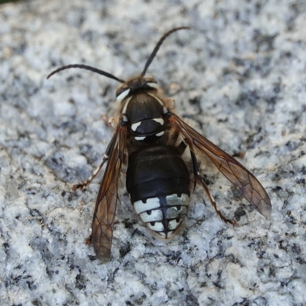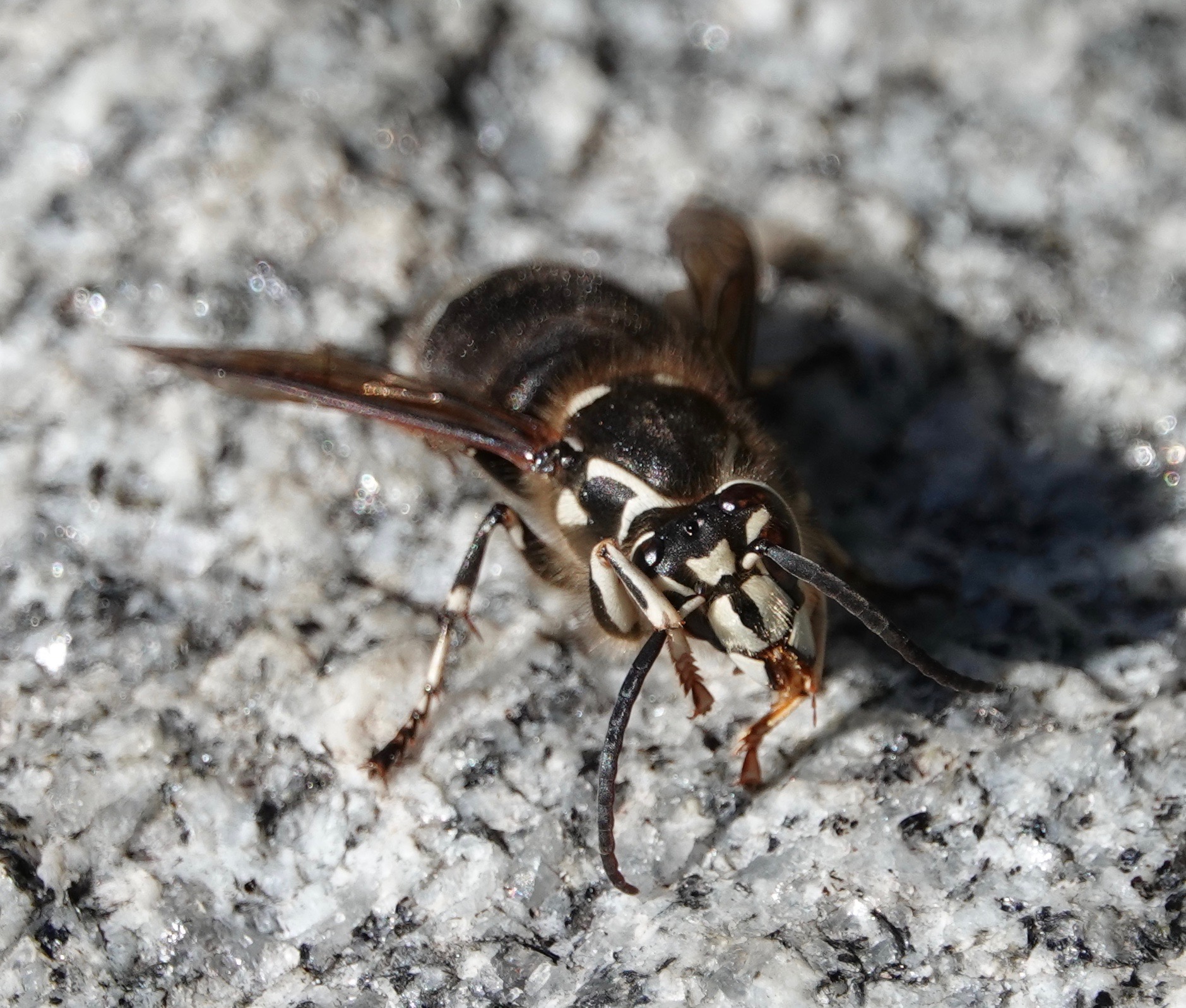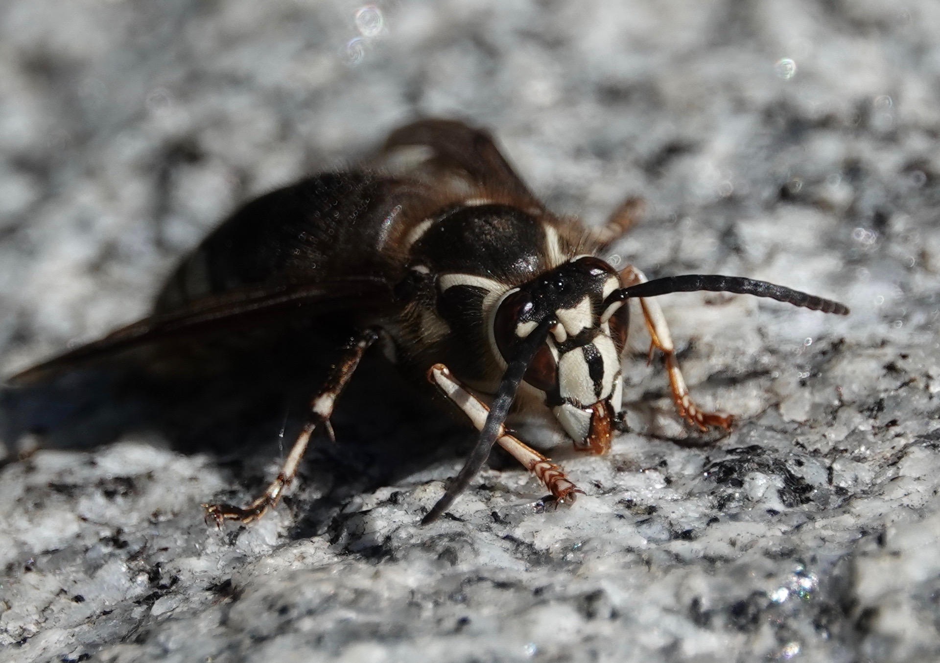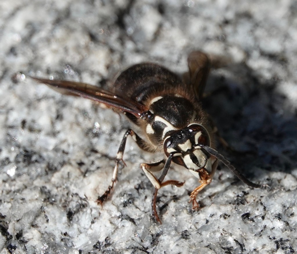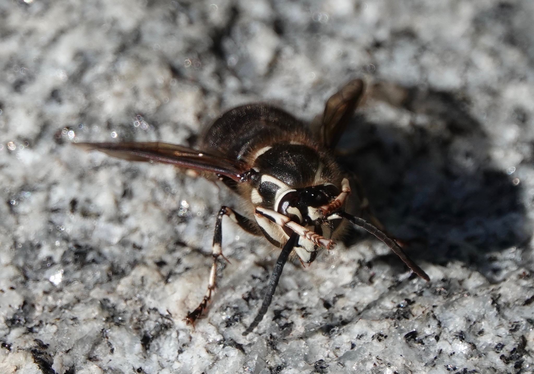 Bald-faced Hornet licking the stonework. Getting salts and minerals?