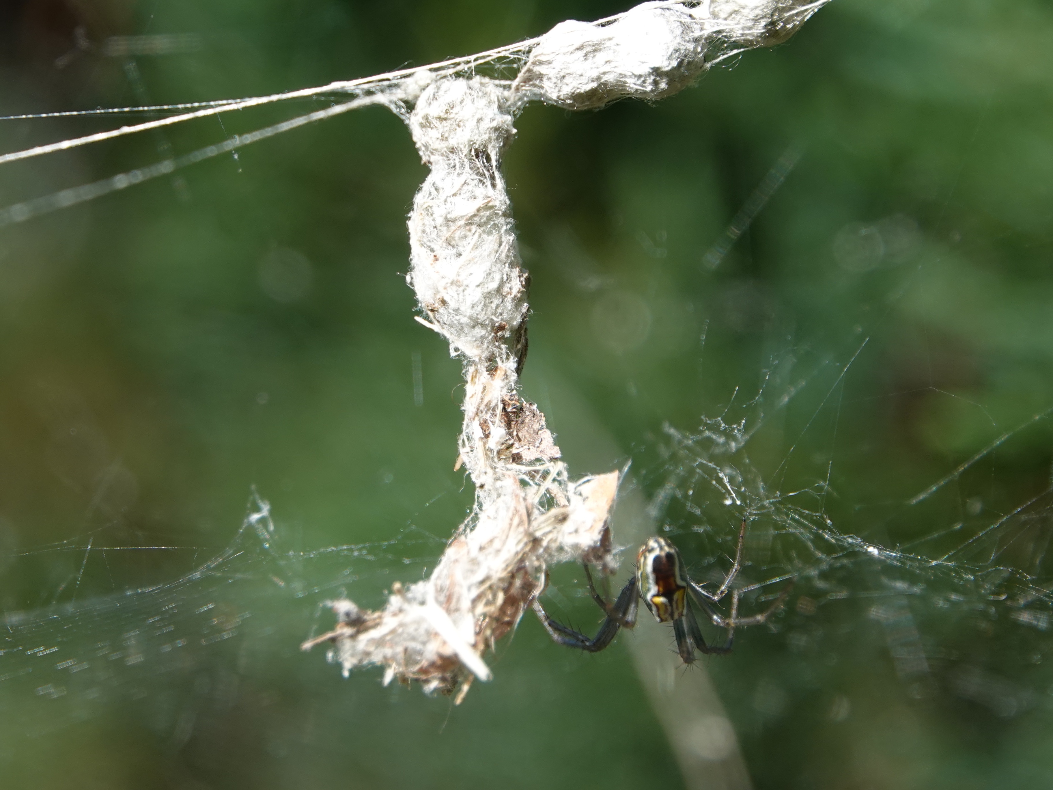 Sometimes the big webs have somebody in the center of them. Spotted orbweaver of some kind.