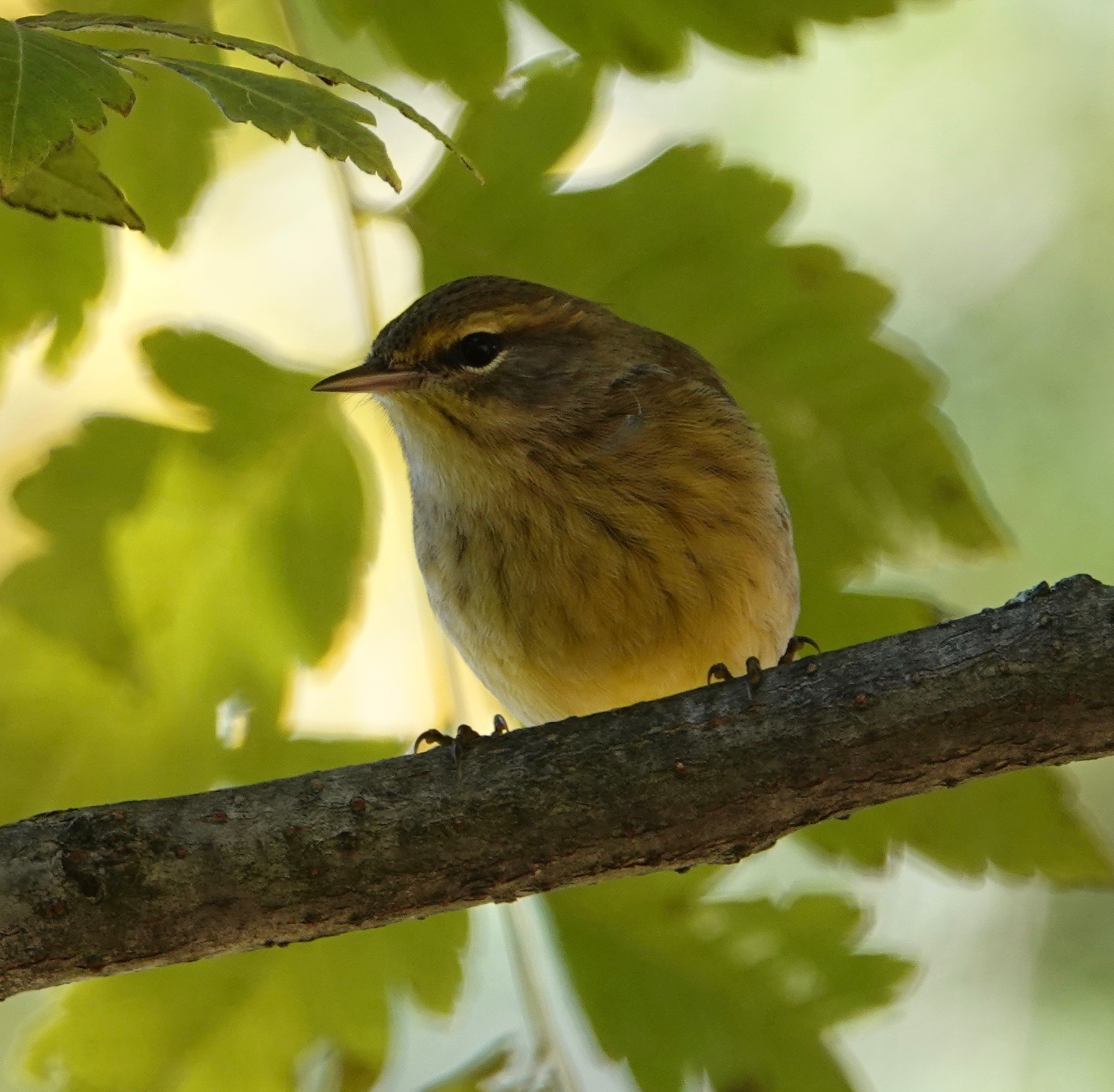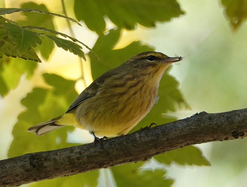 Palm Warblers are most commonly on the ground, but this one has snagged something insect-y on a tree limb.