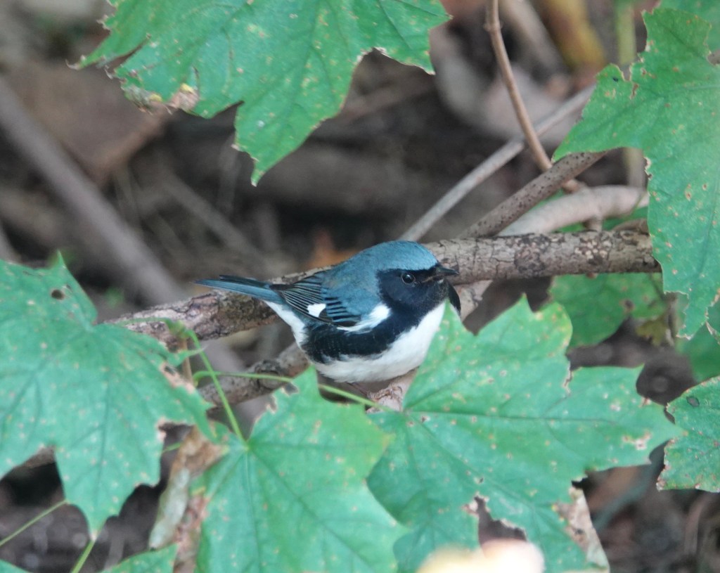 No “confusing fall warbler” garb for the Black-throated Blue male. This is one best-dressed bird the year around.