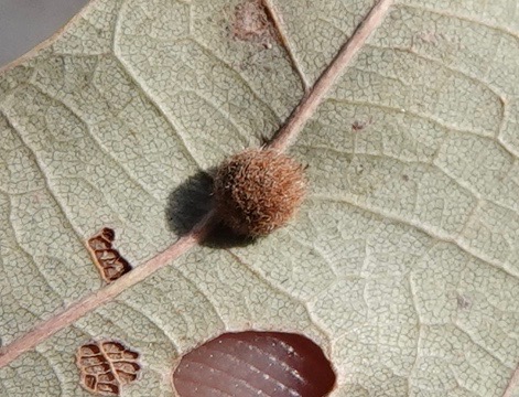 Yes, it’s time for a Fall Gall edition. These are the structures created by the tree, in this case, in response to insects (in these cases) who lay their eggs on the tree. This one is, I think, a Hedgehog Gall.