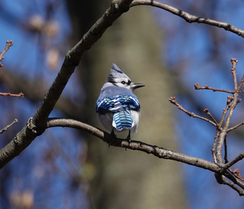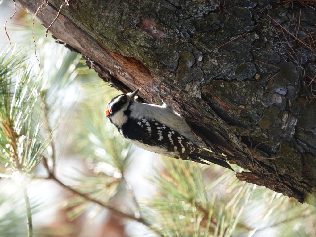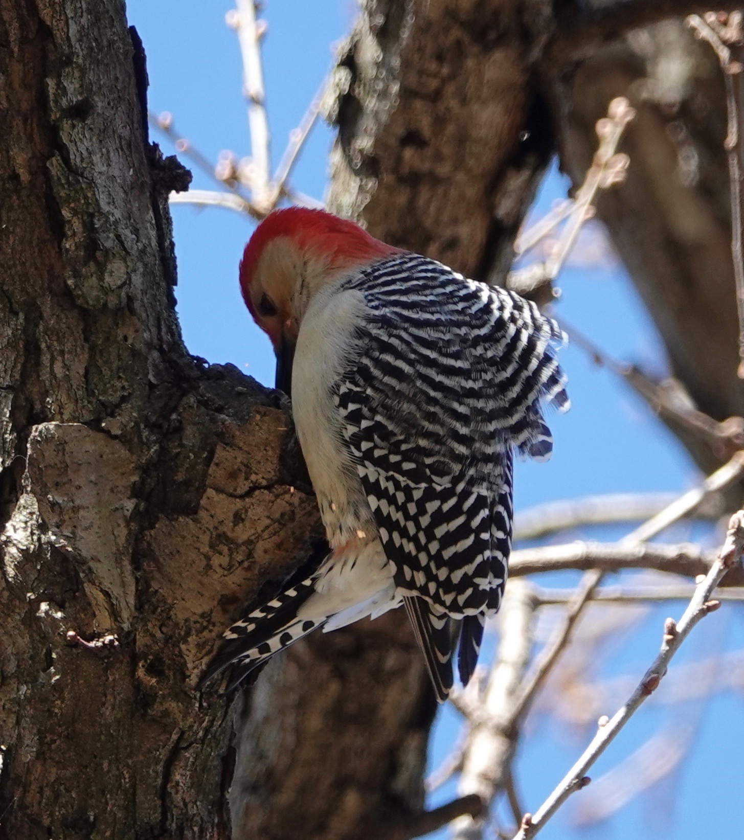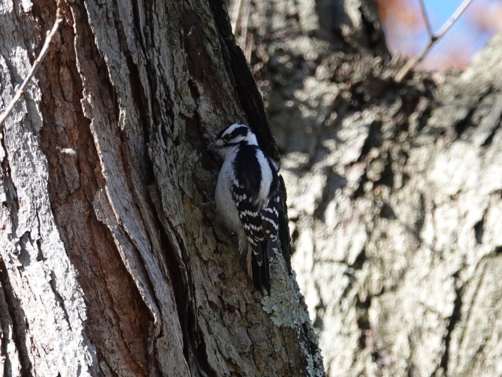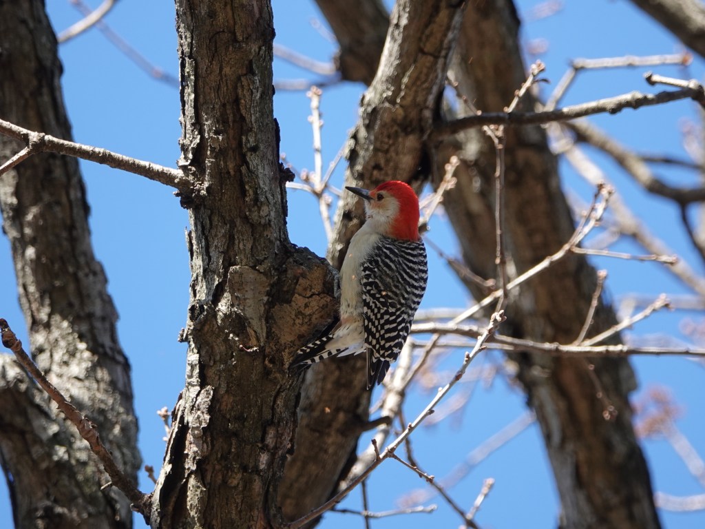 The tapping of Downy Woodpeckers and the clucking of Red-bellied Woodpeckers rang through the leaf-stirring wind.
