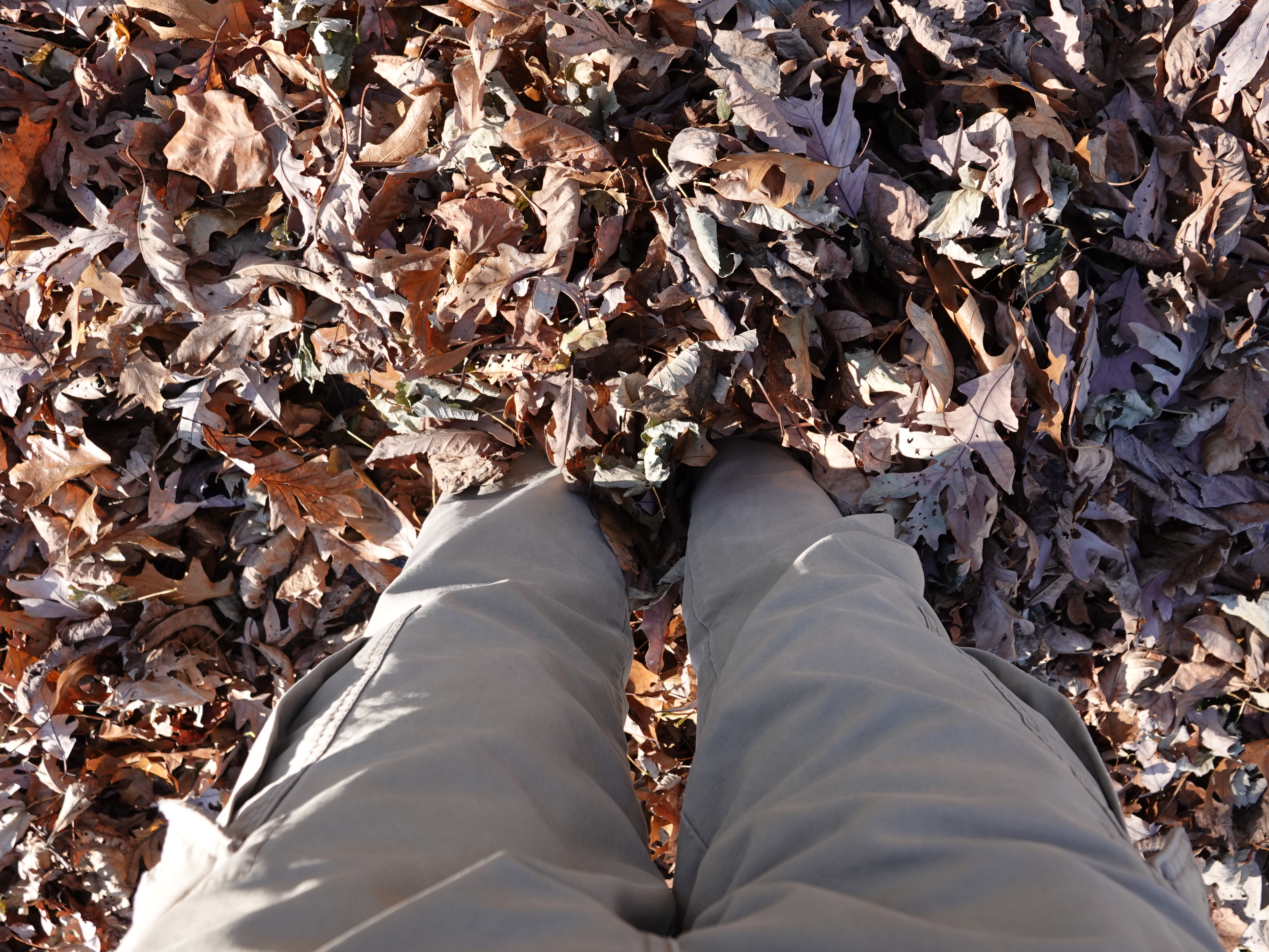 A dry susurration, a crinkly crunch. (The annual up-to-the-calves-in-leaves self-portrait.)