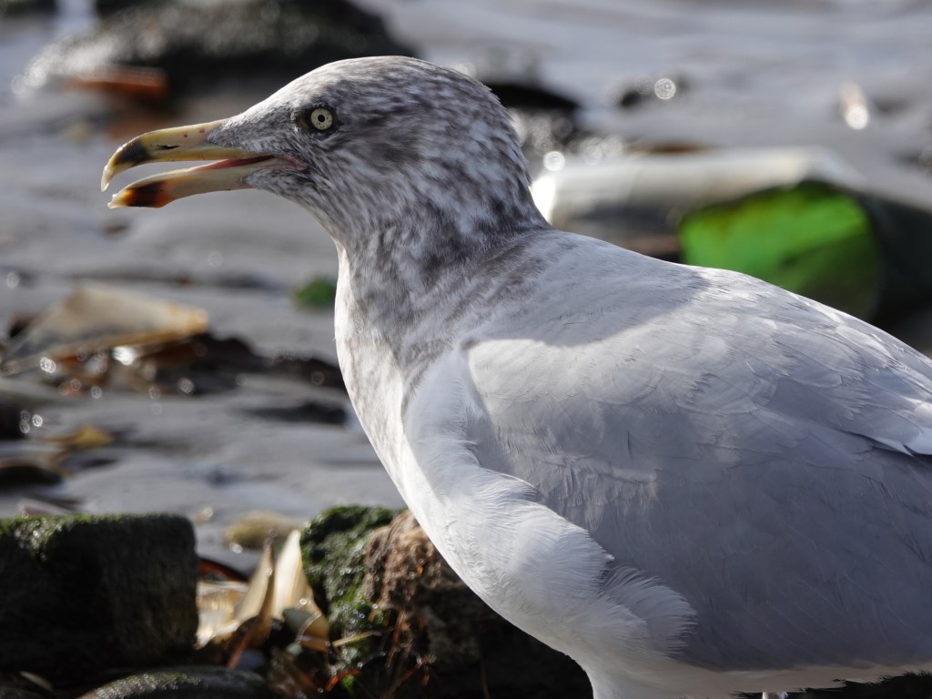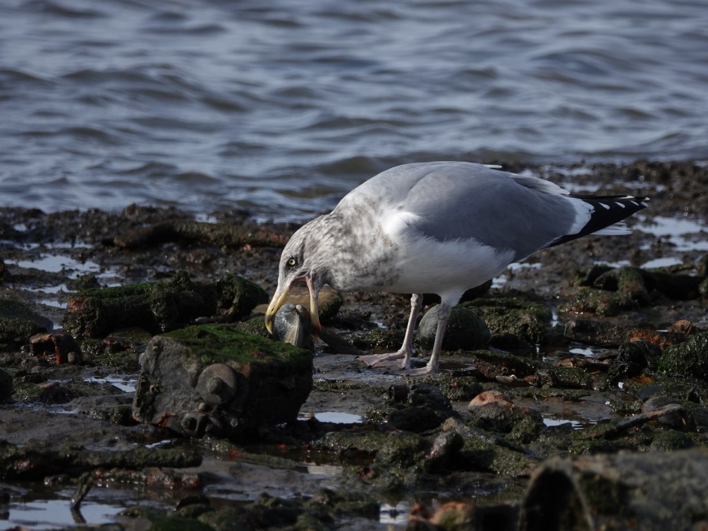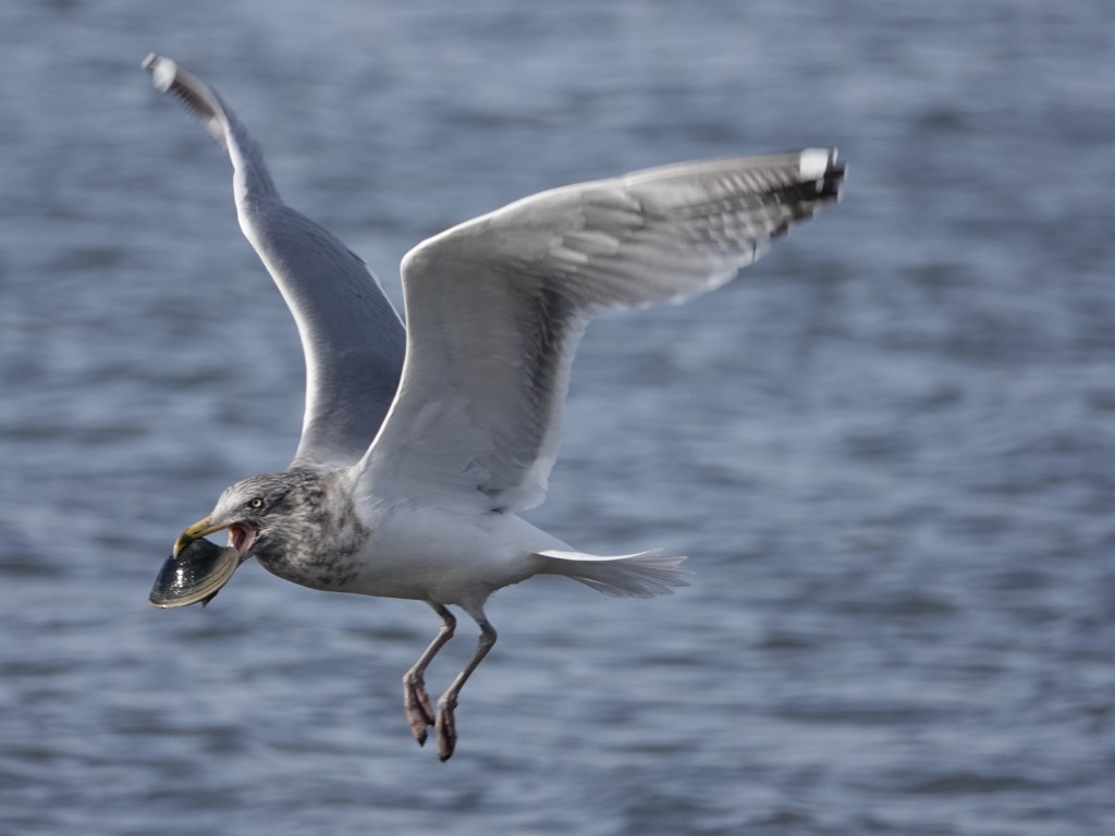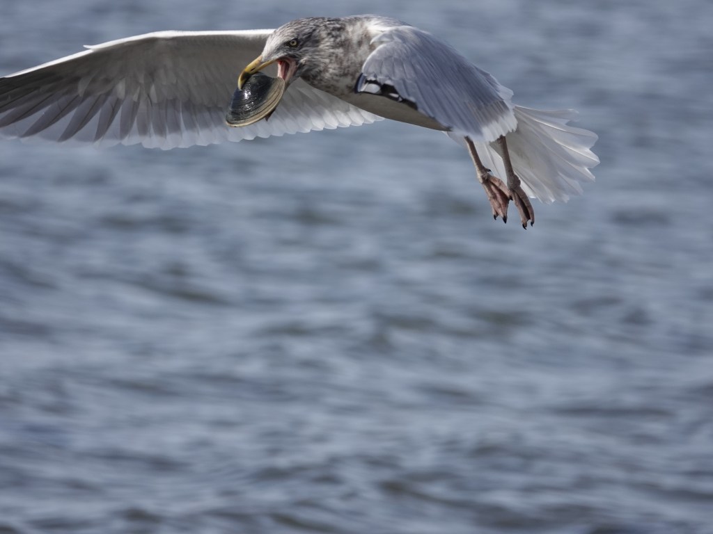 I watched as this Herring Gull dropped this Hardshell Clam (quahog) one two three times before the shell broke apart.