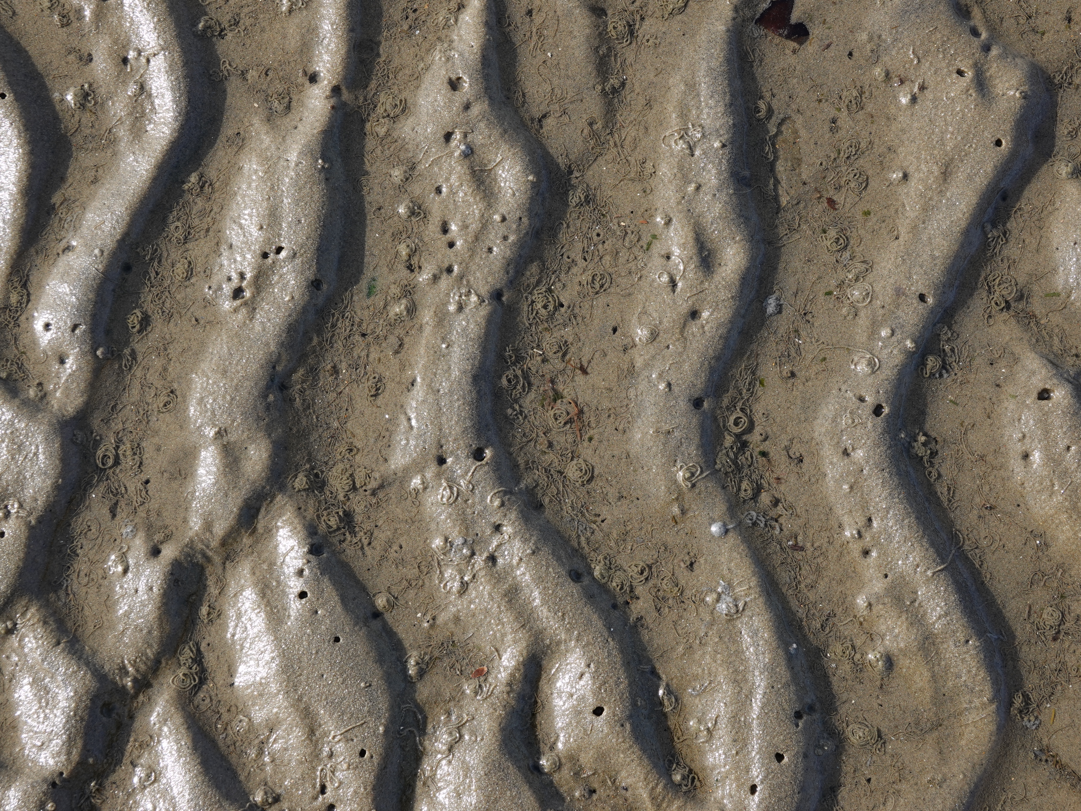 These sandy spaghetti-like strands are casings, thrown out of wormholes in the sand.