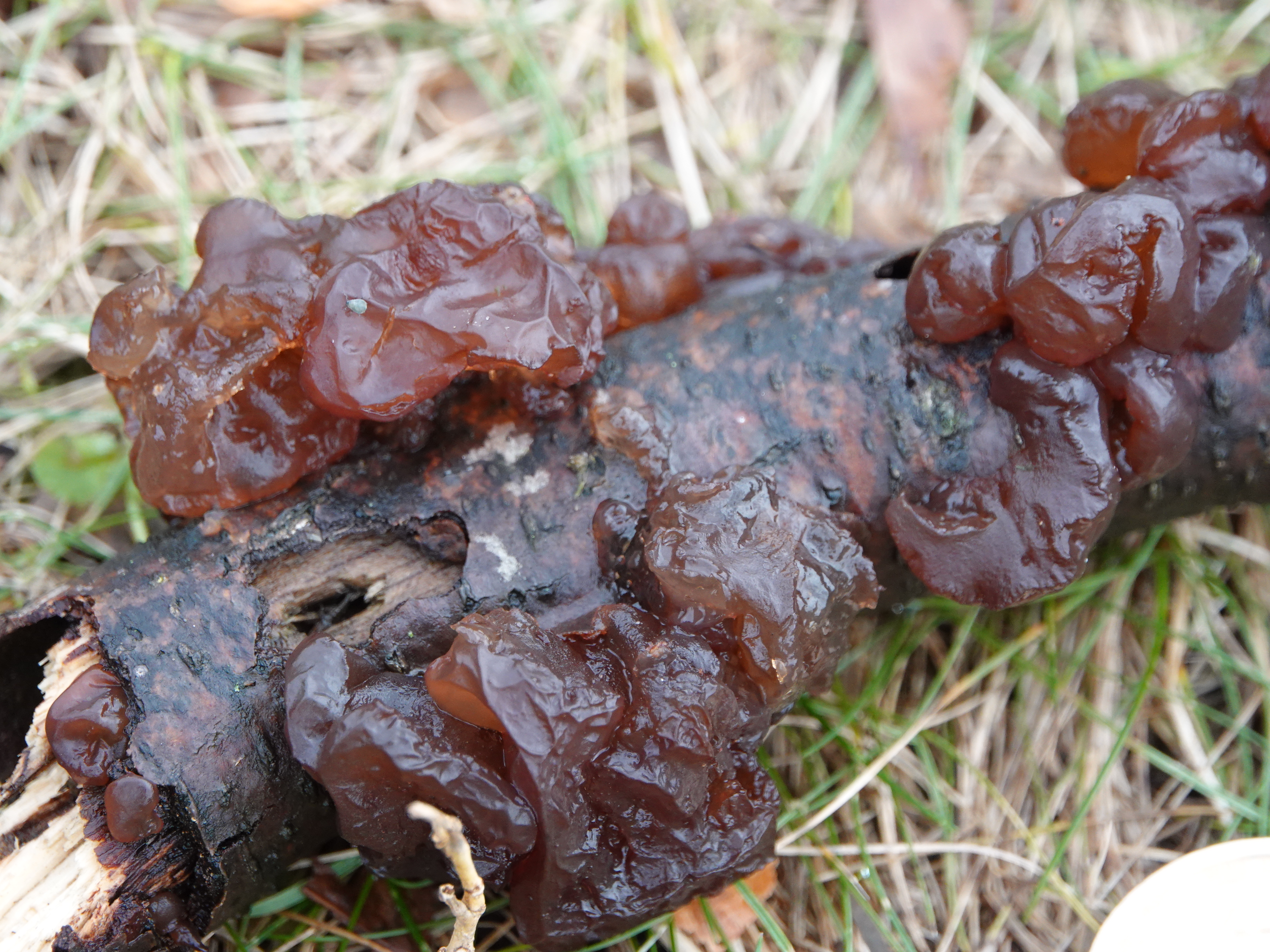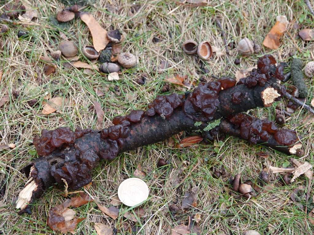 Both trees’ branches were sporting this jelly raisin-like stuff. It seems to be Amber Jelly Fungus (Exidia ricsa).