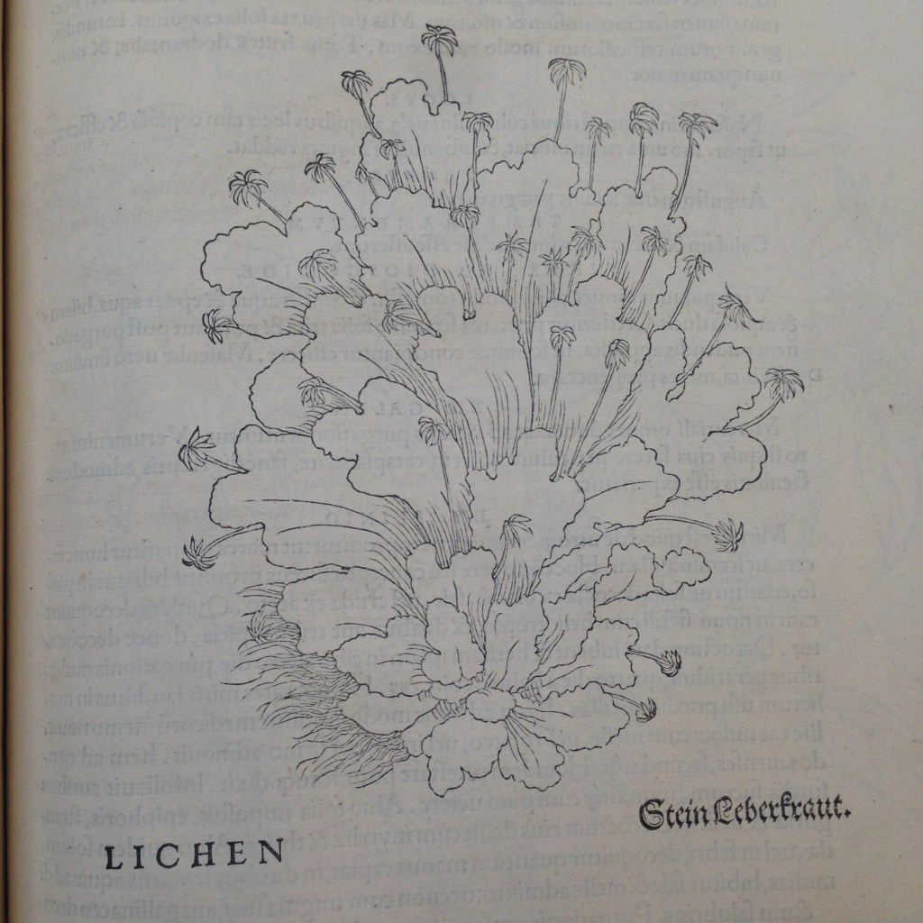 This is the first printed image of a lichen. 1542: Leonhart Fuchs’s De historia stirpium commentarii insignes… (and the title keeps going, as they were wont to). This copy is from the special collections department at the LuEster T. Mertz Library at the NYBG. This book and several others were on display during a recent lecture.