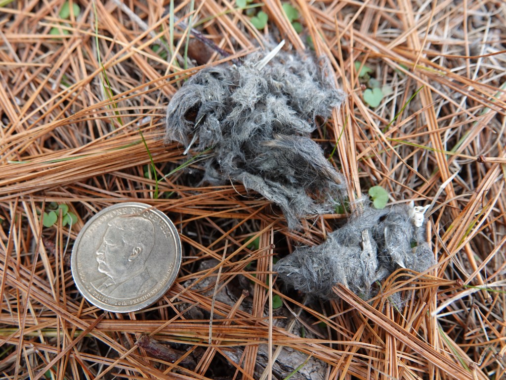 These are pellets hawked up by various birds. The above three photos were all taken in rather close proximity, but under different trees. Examples in the third picture were found all bunched up like this. Too small for Great Horned, too big for Saw-Whet.