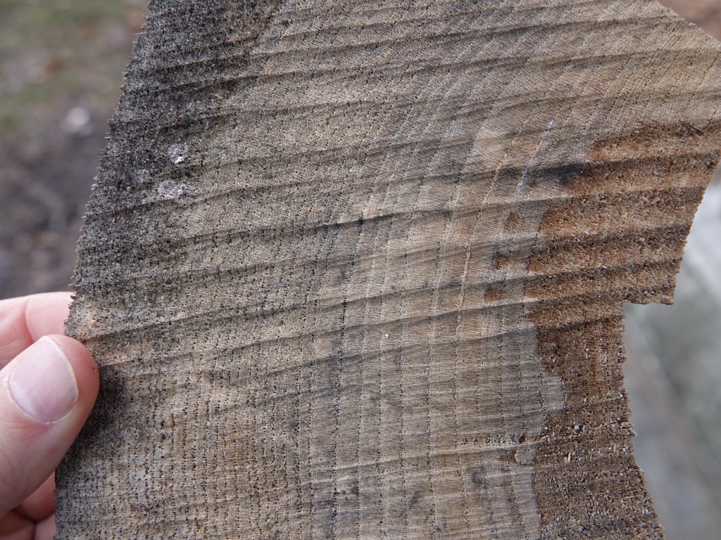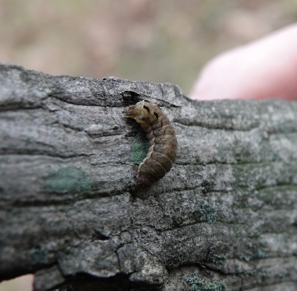 A moth to be here, found on the underside of a piece of bark shed by the tree. (This is the outer side of the bark, but it was upside down on the ground.)