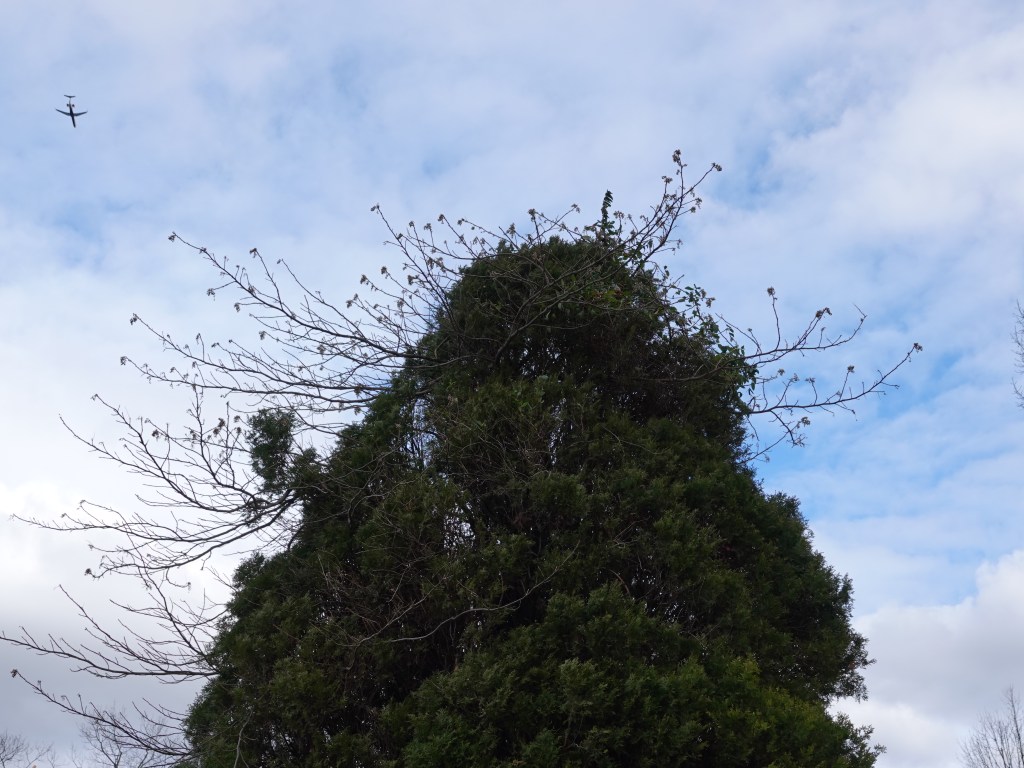 This poison ivy has worked its way through this conifer and sprouted out at the top. Close up of some of the berries: birds love these things in winter.