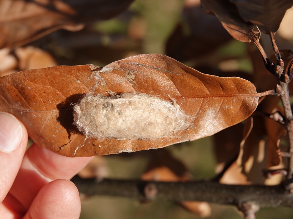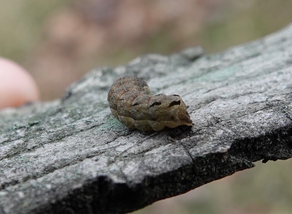 A moth to be here, found on the underside of a piece of bark shed by the tree. (This is the outer side of the bark, but it was upside down on the ground.)