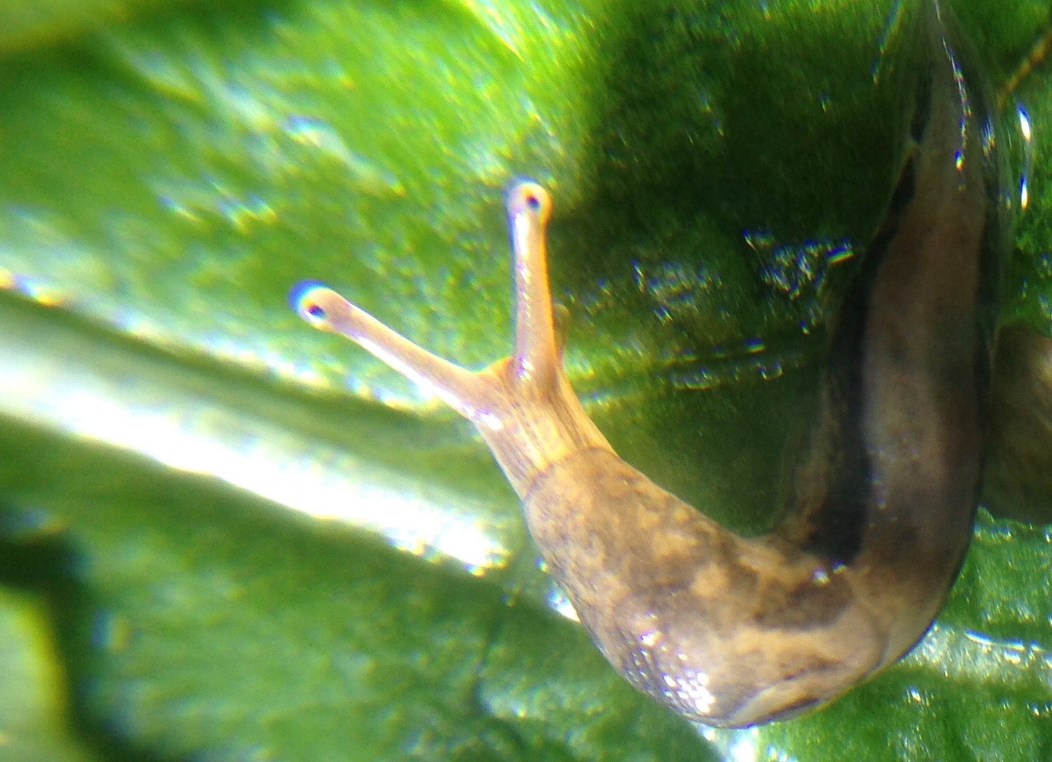 In the Japanese turnip greens, purchased in Brooklyn but sourced in Lancaster PA. Perhaps one of the threeband slugs of the genus Amibigolimax.