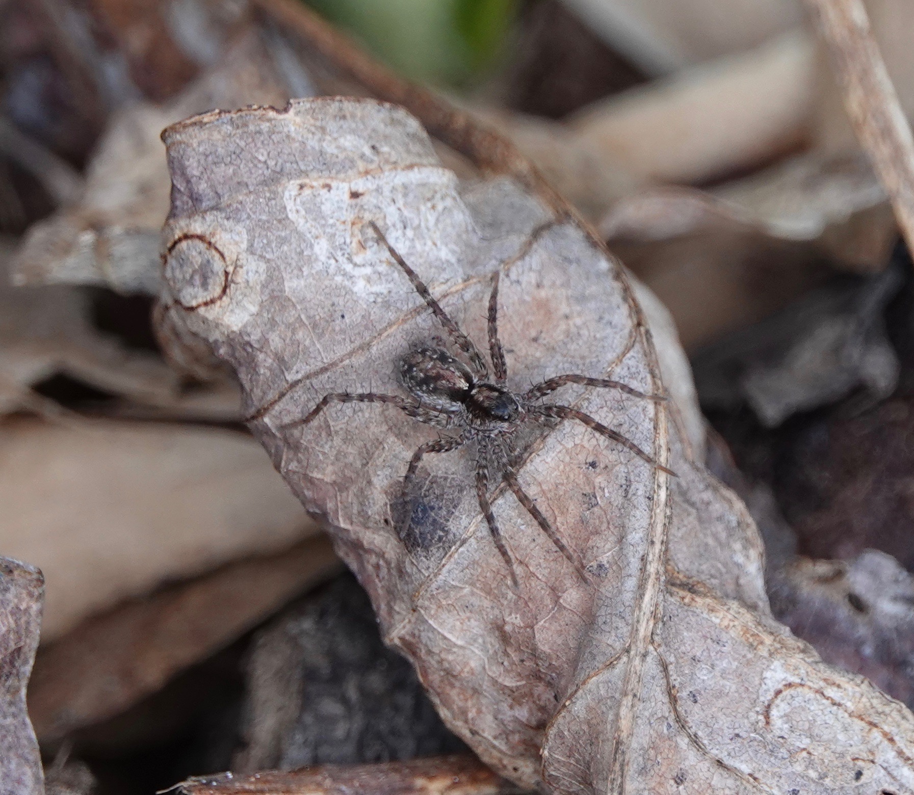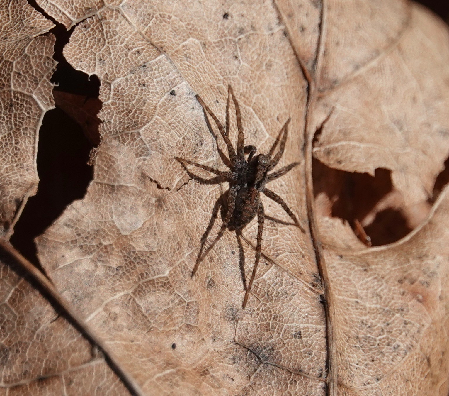 These small wolf spiders have been in every layer of leaves I’ve looked at closely in Green-Wood for a couple of weeks now. Not grass, leaves, which give them so much cover.
