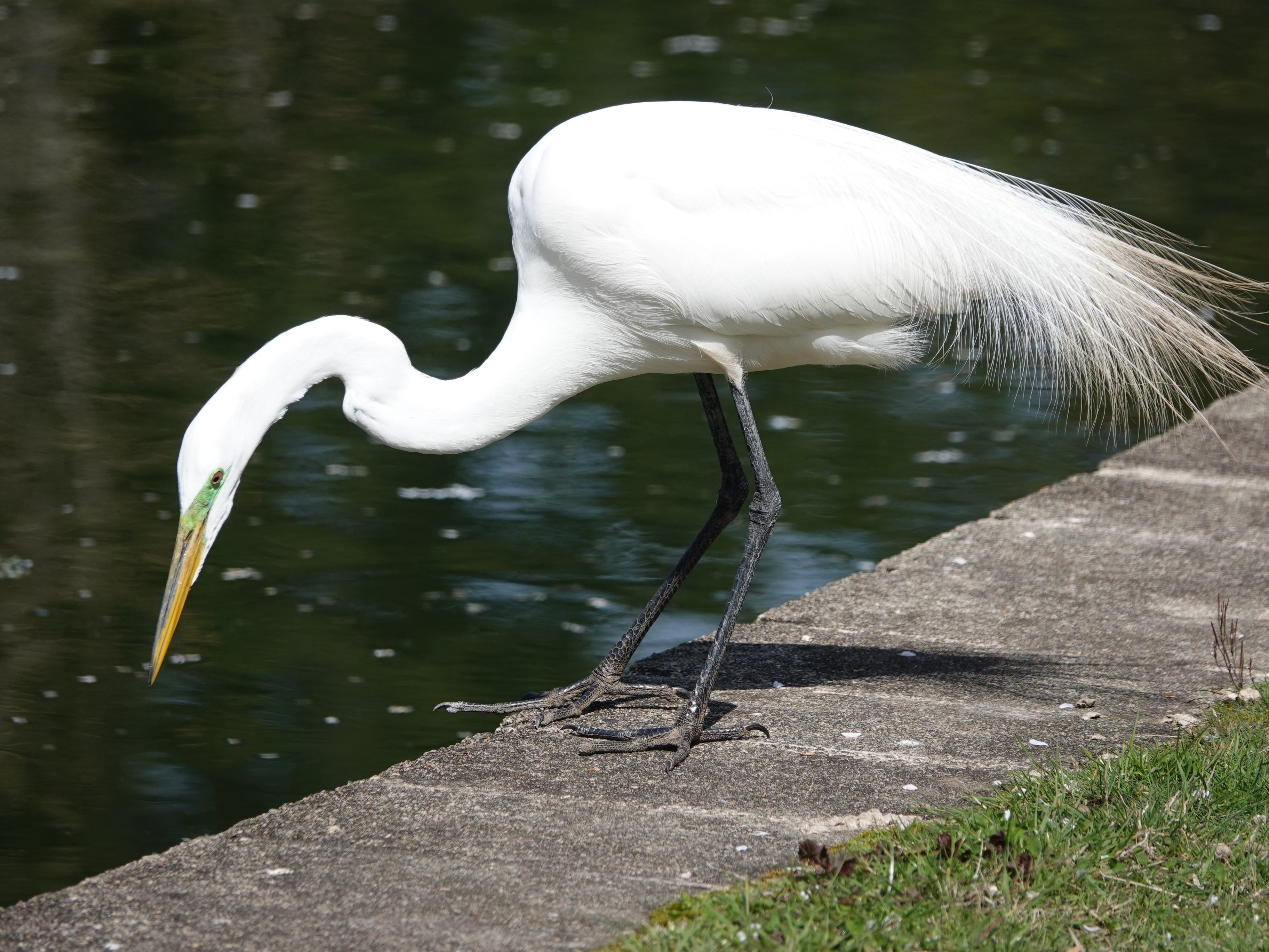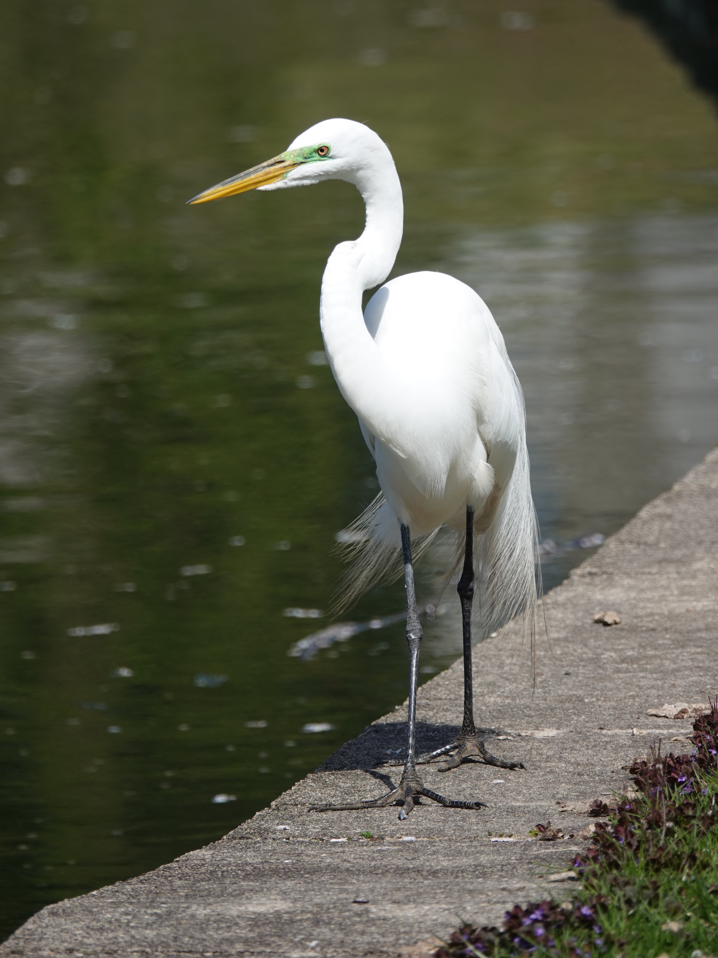 Immediately noticeable on this Great Egret are its green lores and long, trailing plumes.