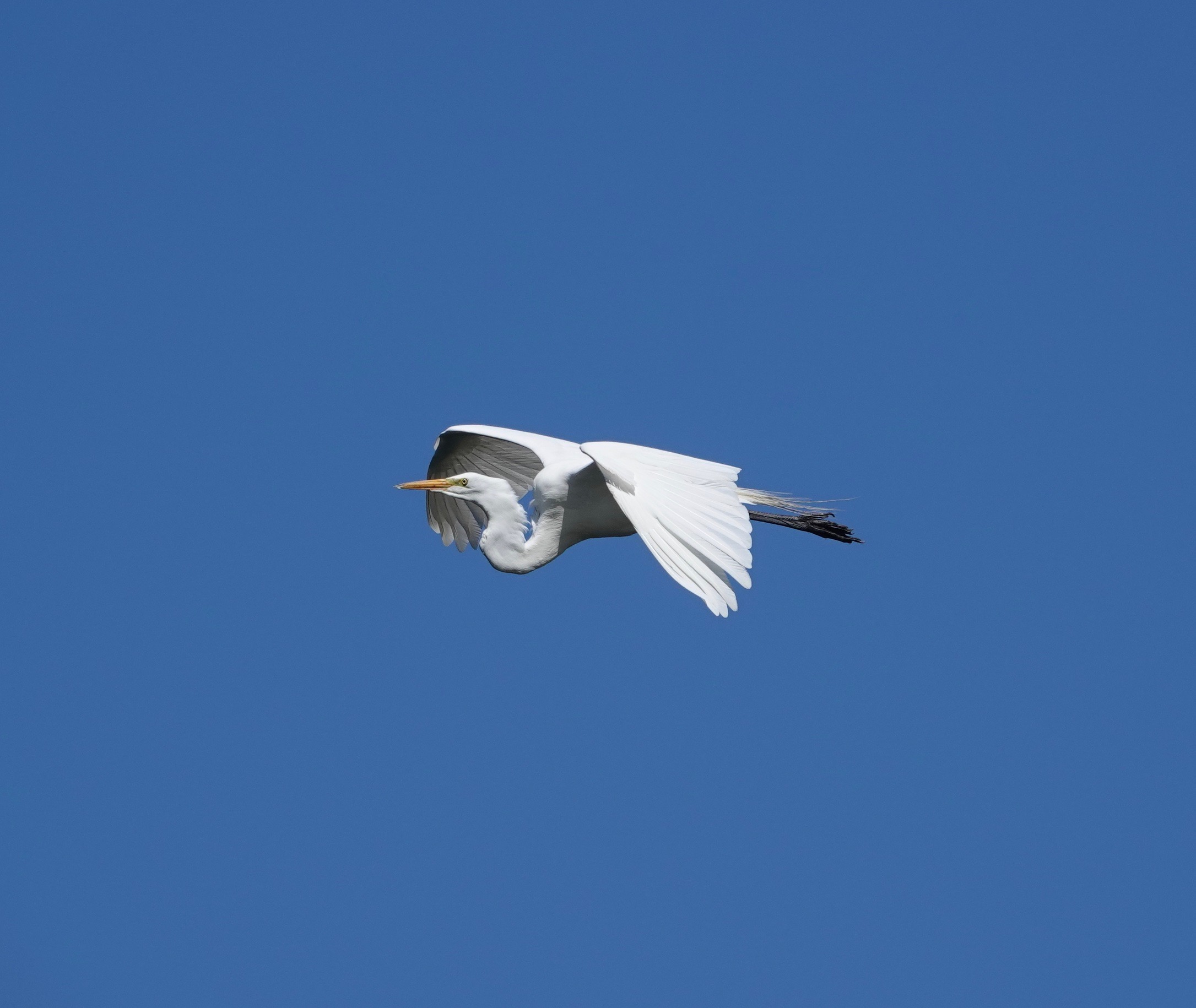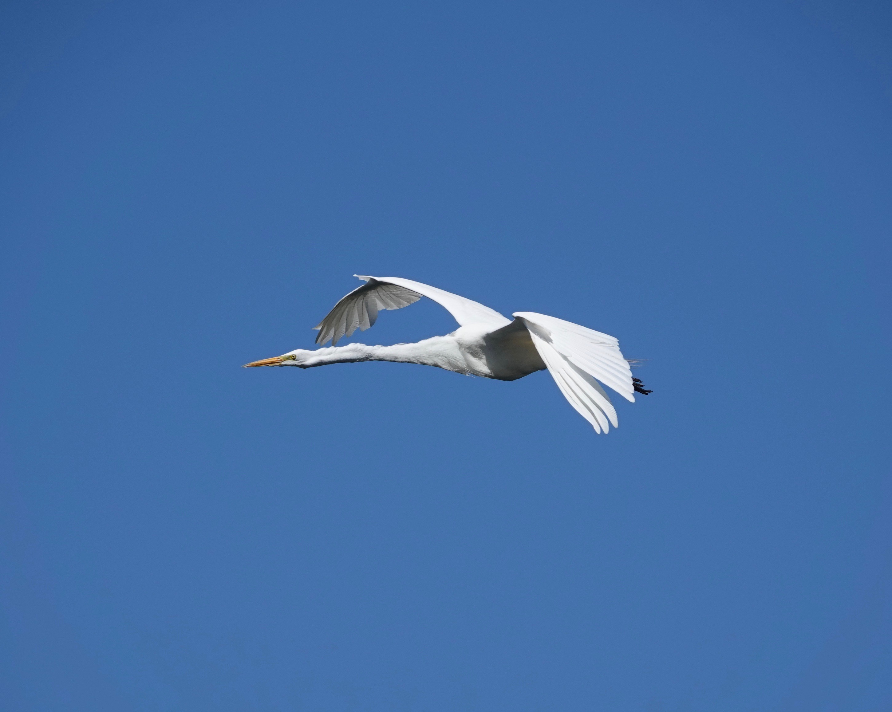 This Great Egret came in for a landing, but there was another one on the shore. The two of them flew into a tussle. Not sure which one won. The other circled a few times and flew off.