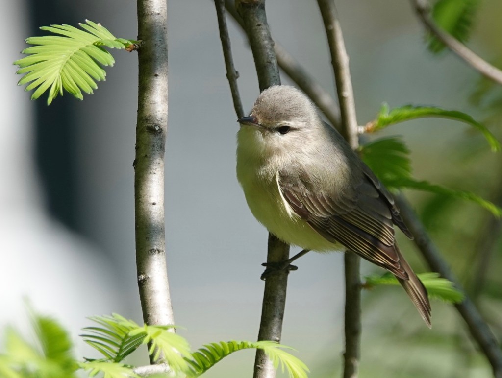The species epithet gilvus means “yellowish.” That’s very light-dependent from our modern view, that is, a live bird not in hand, rather than the dead bird such taxonomic nomenclature is based on.