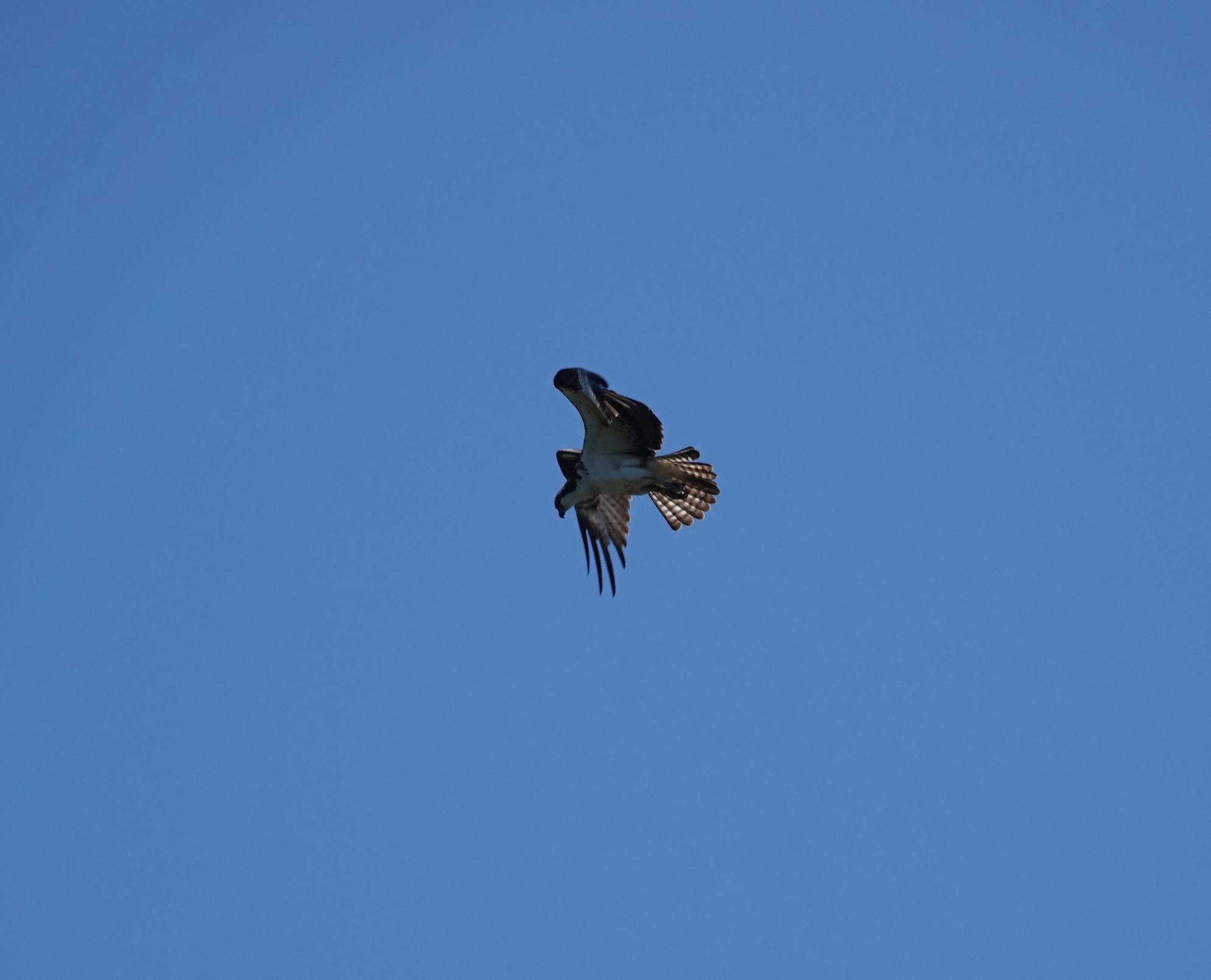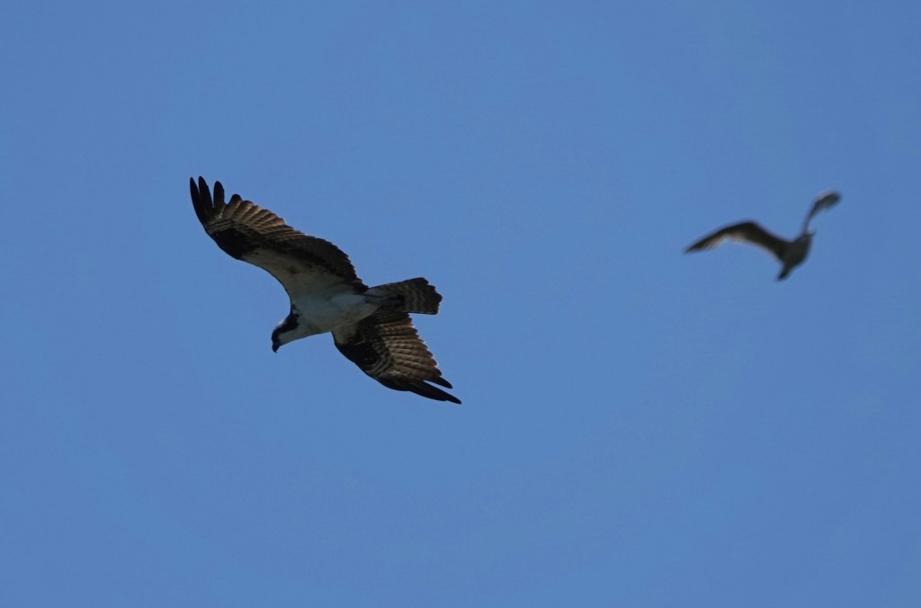 Also spotted yesterday was an Osprey over Sylvan Water, hovering as it scoped out the view. Looking for fish in the pond. The bird did not dive here.