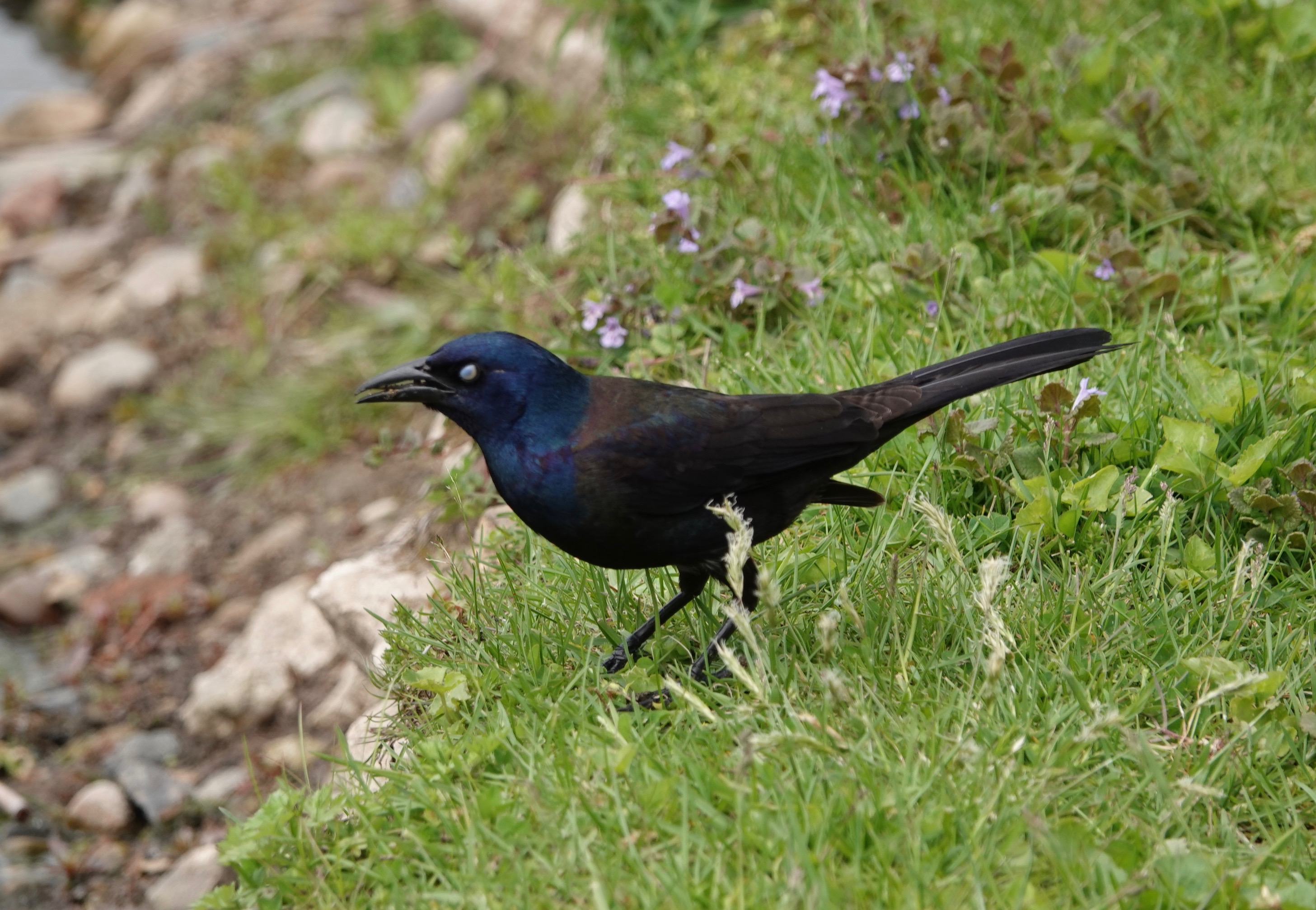 Blinking Common Grackles.