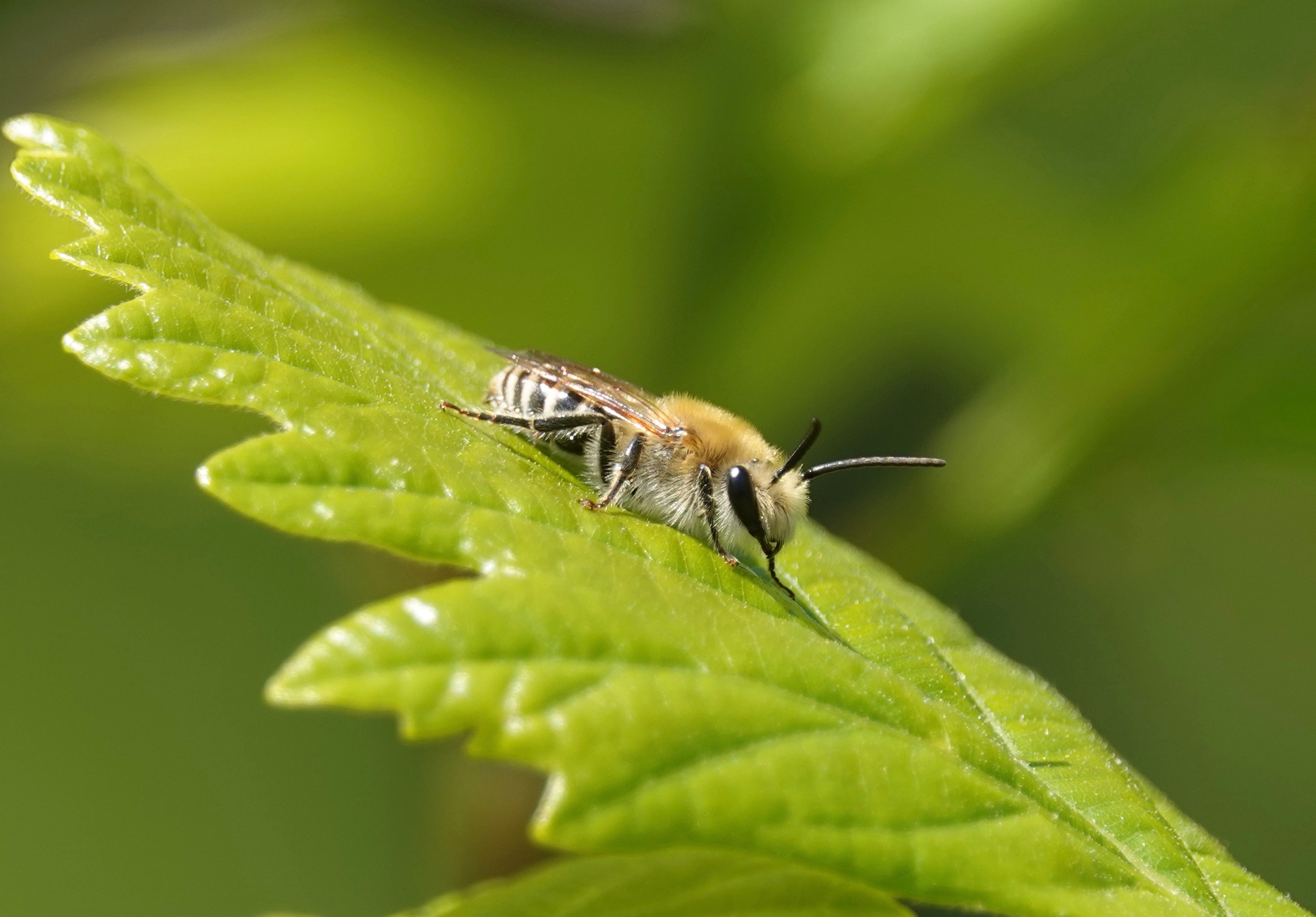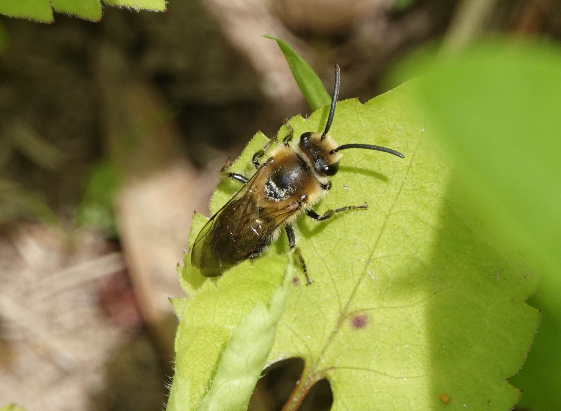 Two Rufus-chested Cellophane Bees (Colletes thoracicus). Most of our wild bees (a.k.a. not invasive honeybees) are ground-nesting species. Cellophane bees waterproof their tunnels with a natural polyester, hence “cellophane.”