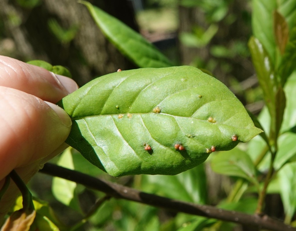 Black Tupelo (Nyssa sylvatica) leaves with galls of Aceria nyssae, a mite. Doesn’t seem to have a common name.