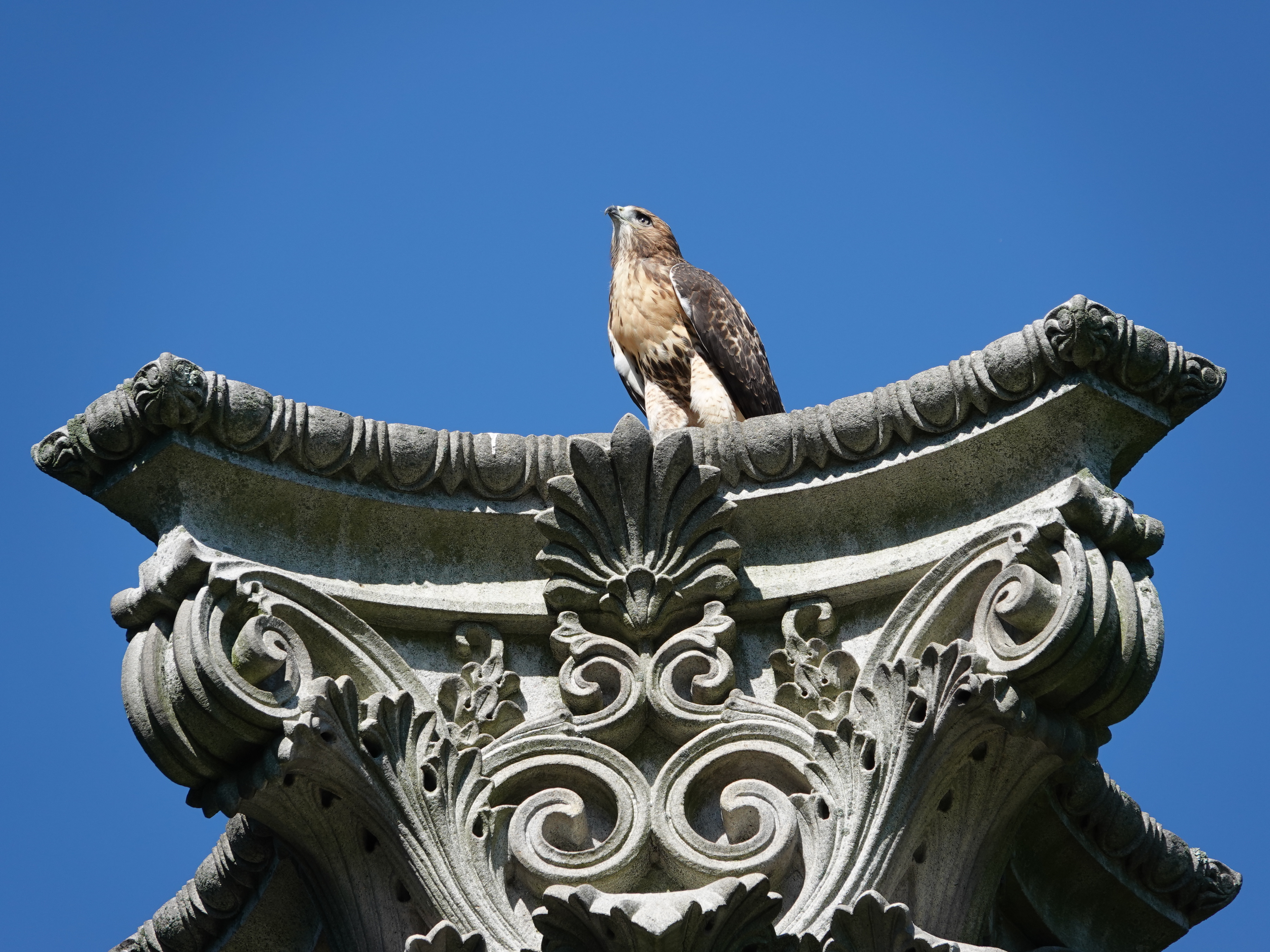 Two young Red-tailed hawks of the class of 2020 were screaming their heads off the other day in Green-Wood. Because they were so close to the big pine nest, I presume that’s where they came from.
