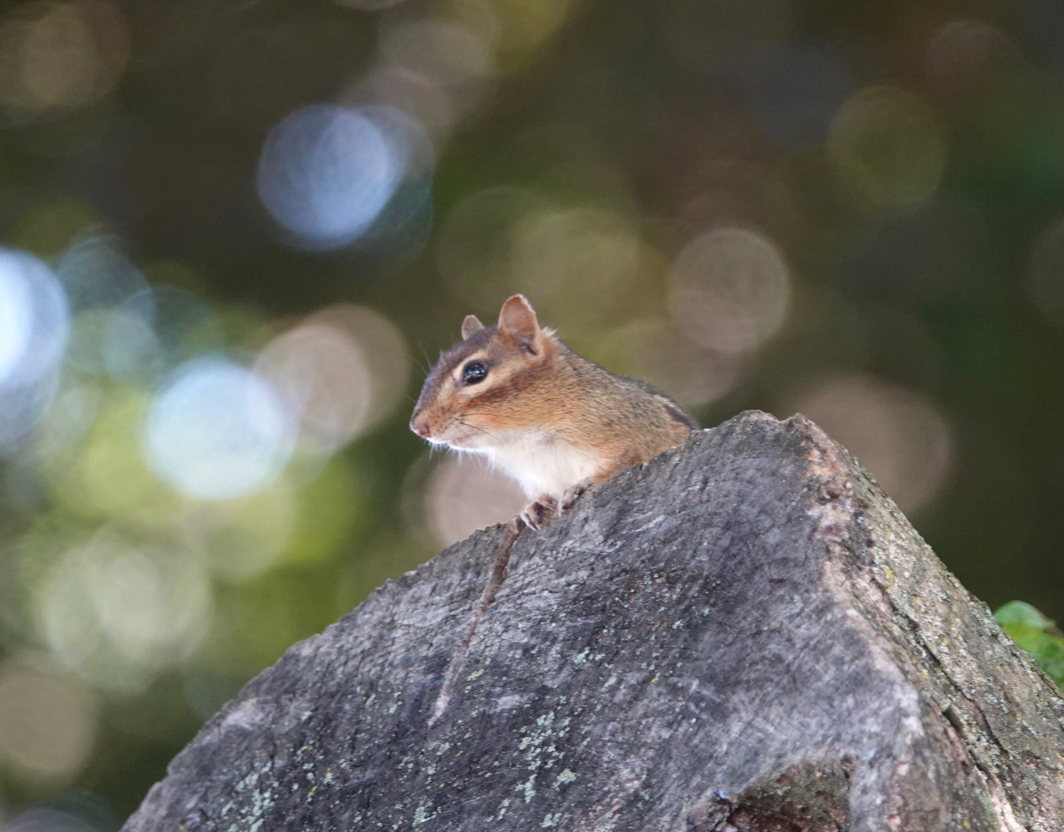 Eastern Chipmunks (Tamias striatus) are few and far between in Green-Wood. I see them there rarely, but the other day a wren-brown spot in the distance, which I thought might, in fact, be a wren, turned out to be this one.