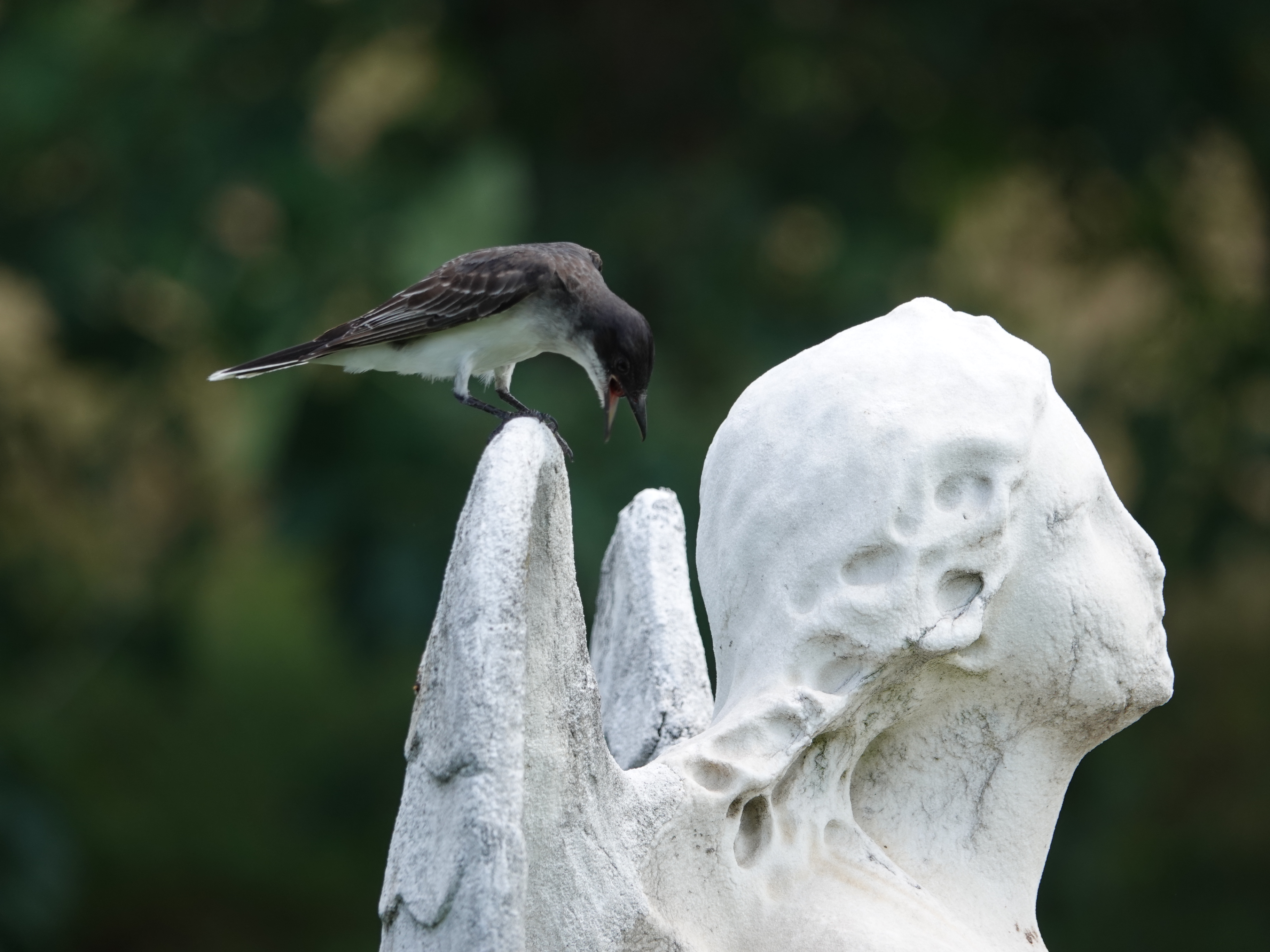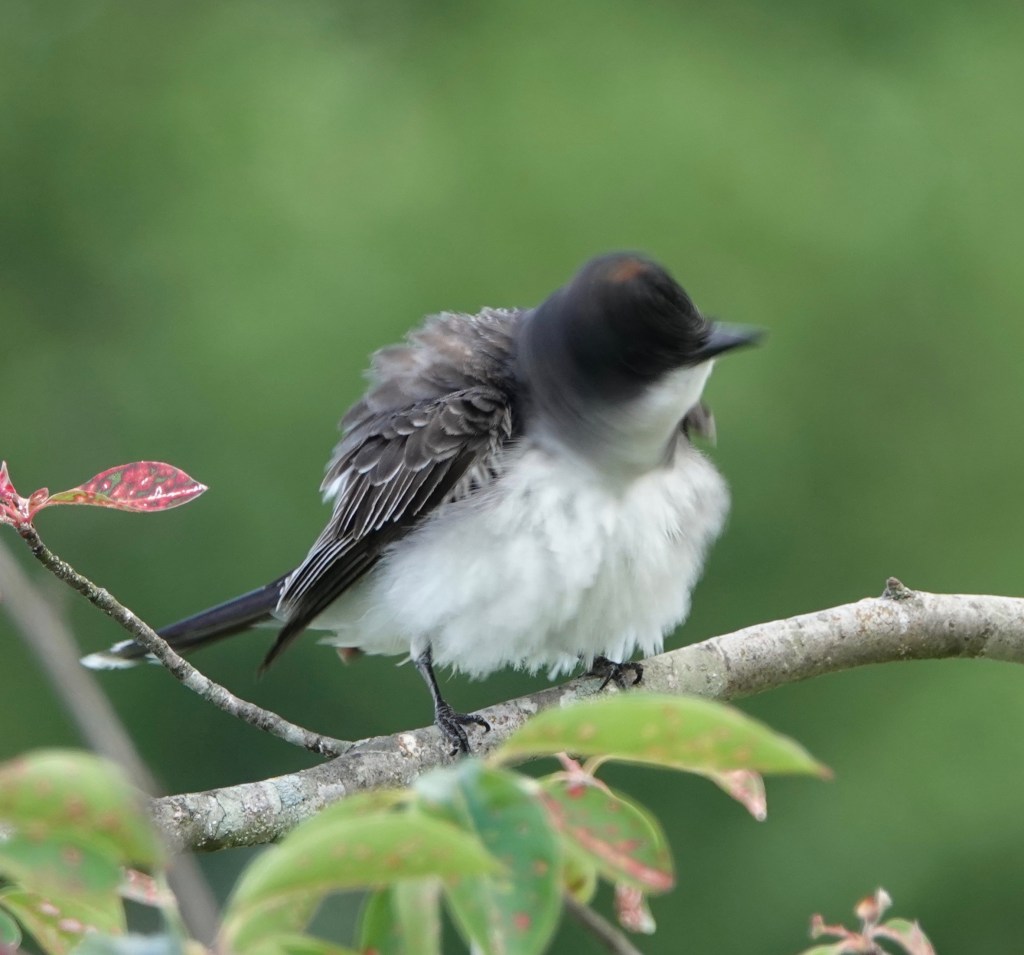 I’m still looking for hard evidence, i.e. fledglings, of Green-Wood breeding Eastern Kingbirds. In the meantime, enjoy this rare look at the rather subtle touch of red on the bird’s head.