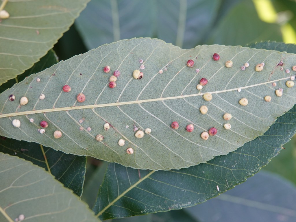 […] catch my eye. I’ve now spotted eleven species in Green-Wood, mostly on pignut (Carya glabra). Here’s my first report on this phenomenon. Above is Hickory Peach-haired Gall Midge (Caryomyia persicoides) according to my gall sensei on […]