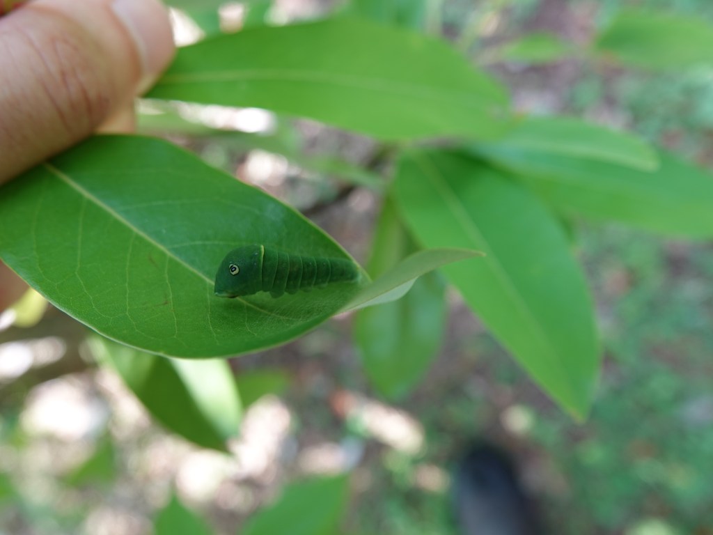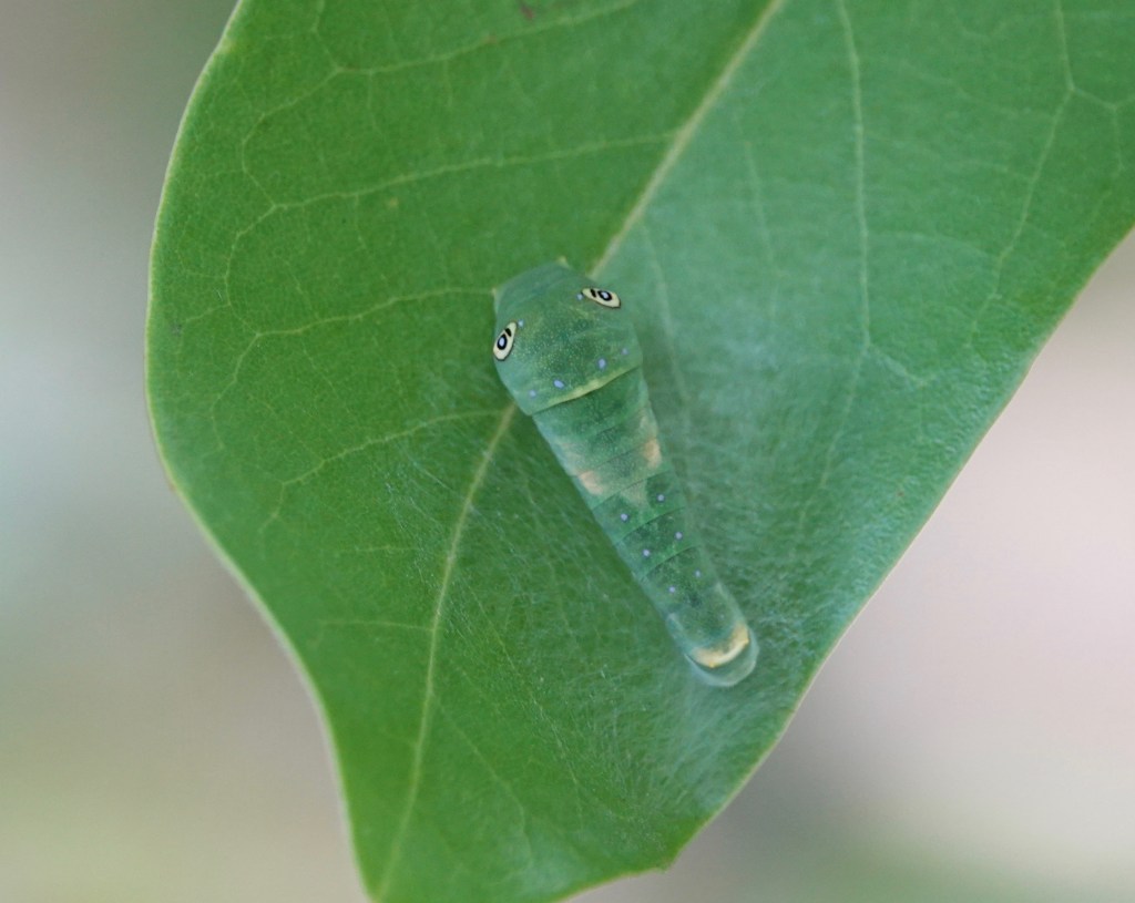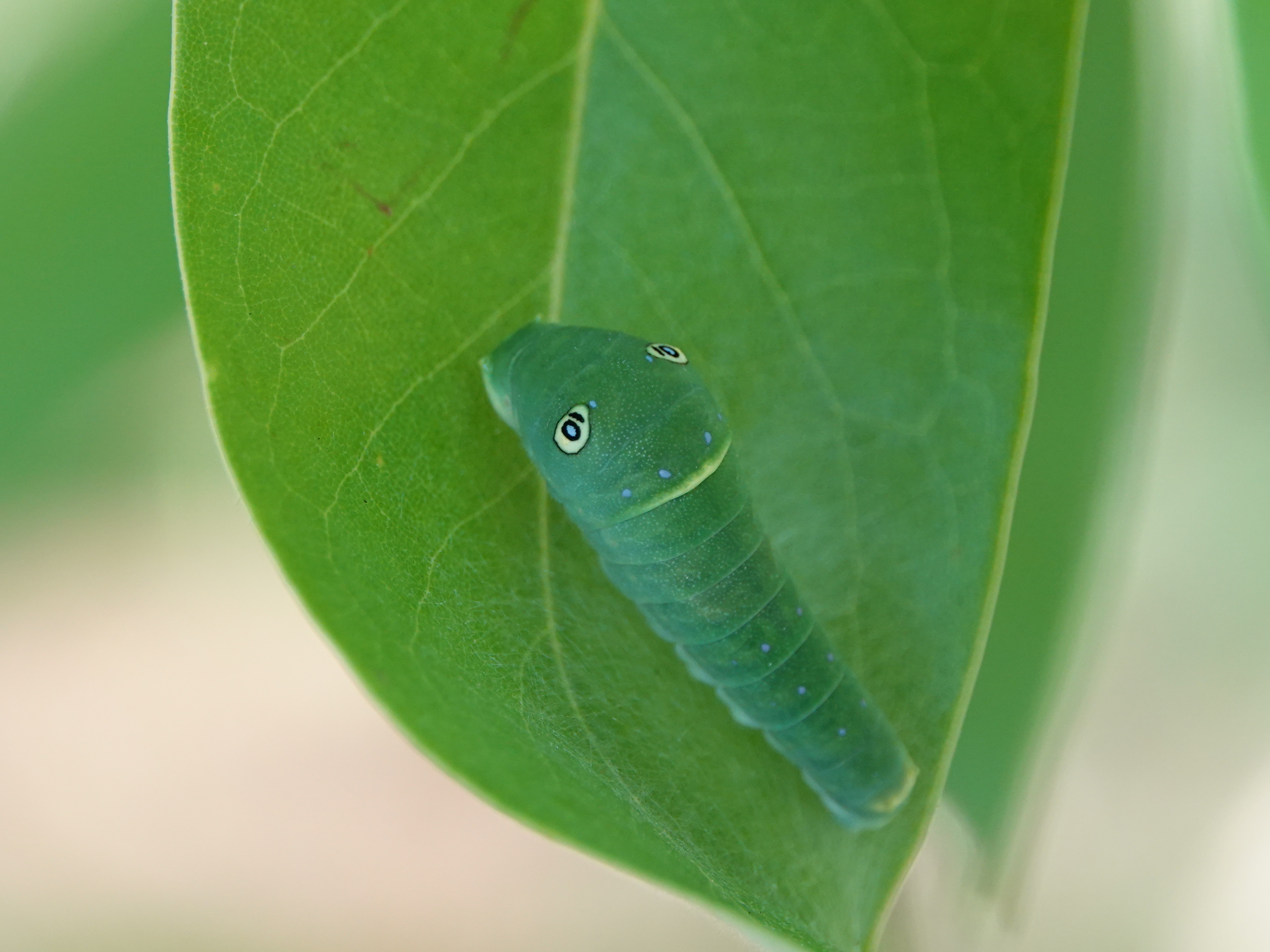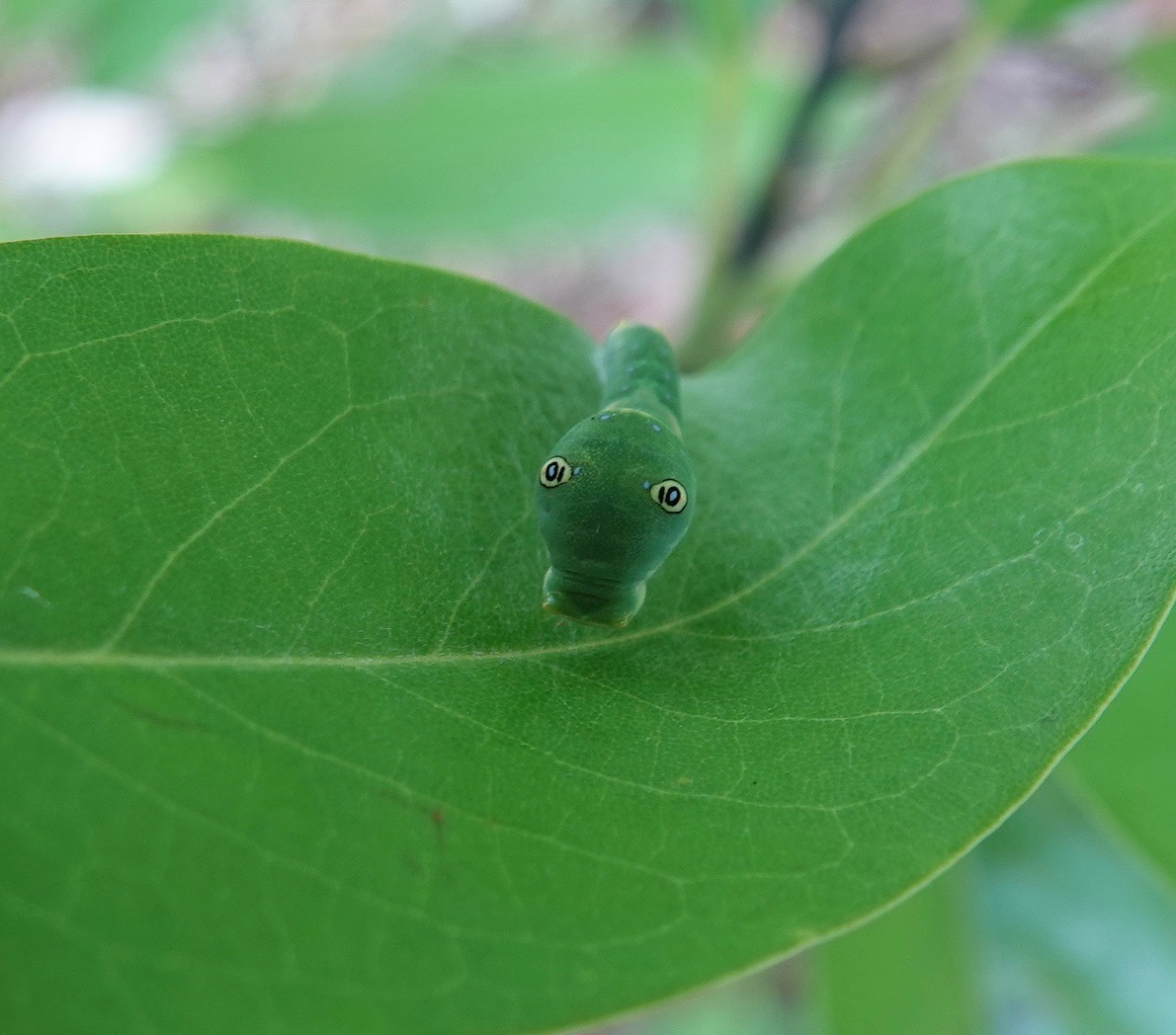 But when you look closer, your larger-than-average predator brain will note some curiosities. The “eyes” are fake, by the way.(Some caterpillars pretend to be twigs…)