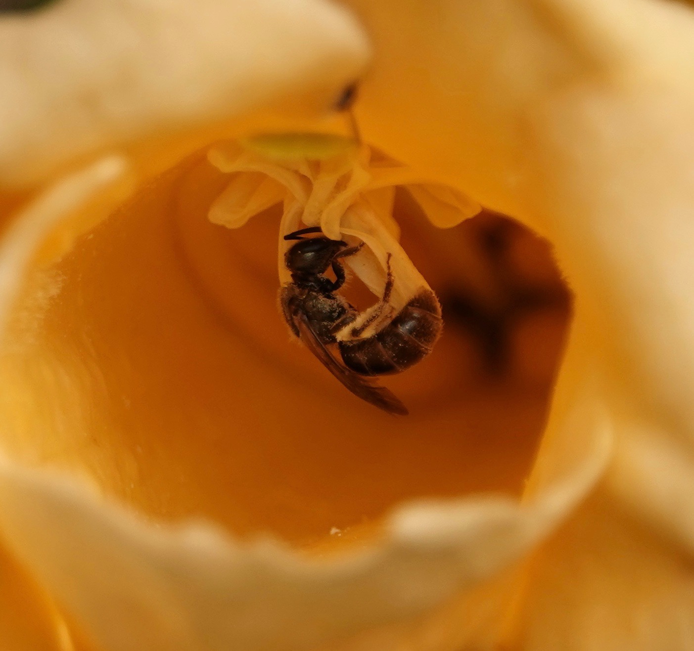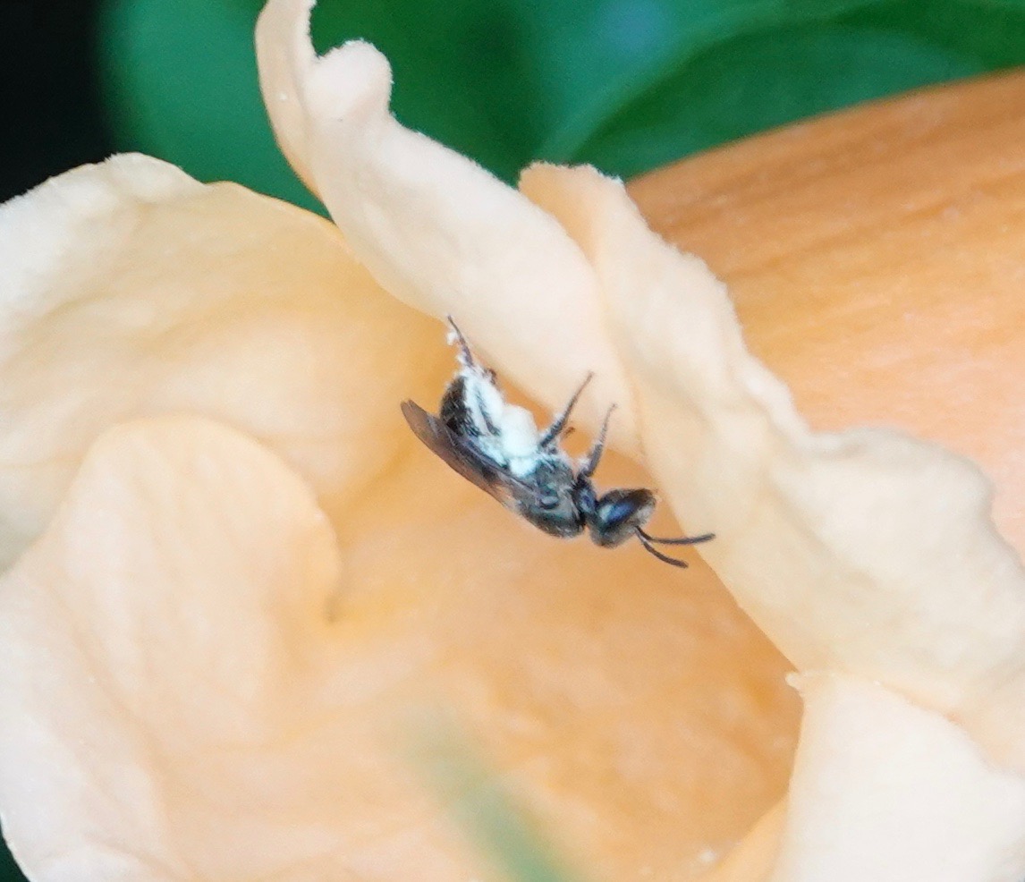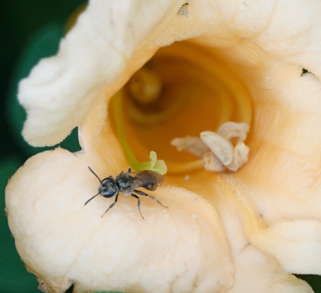 Lots of pollinators were at work here this weekend. Some were squeezing into the barely opened flowers, others bustling into the wide open ones.
