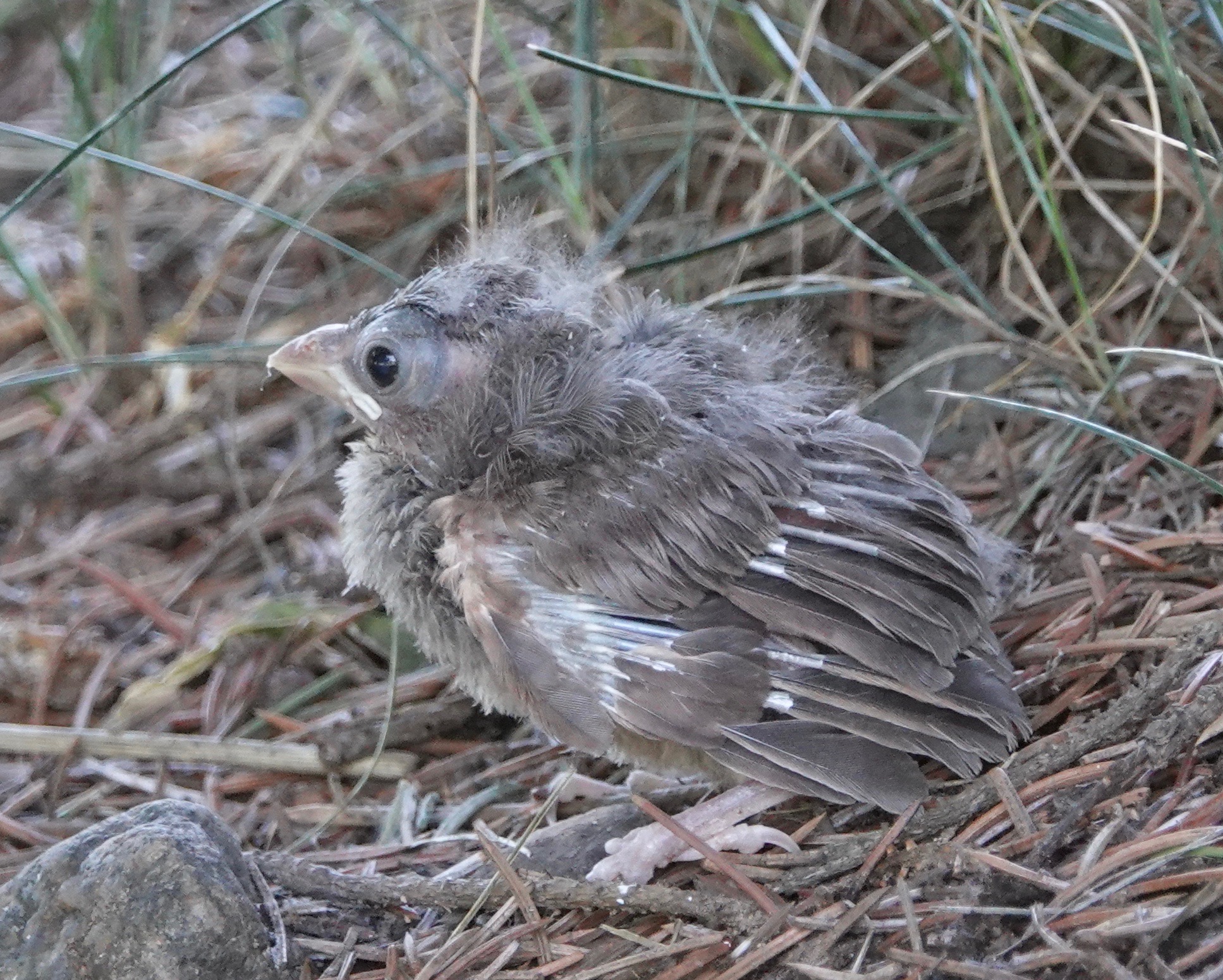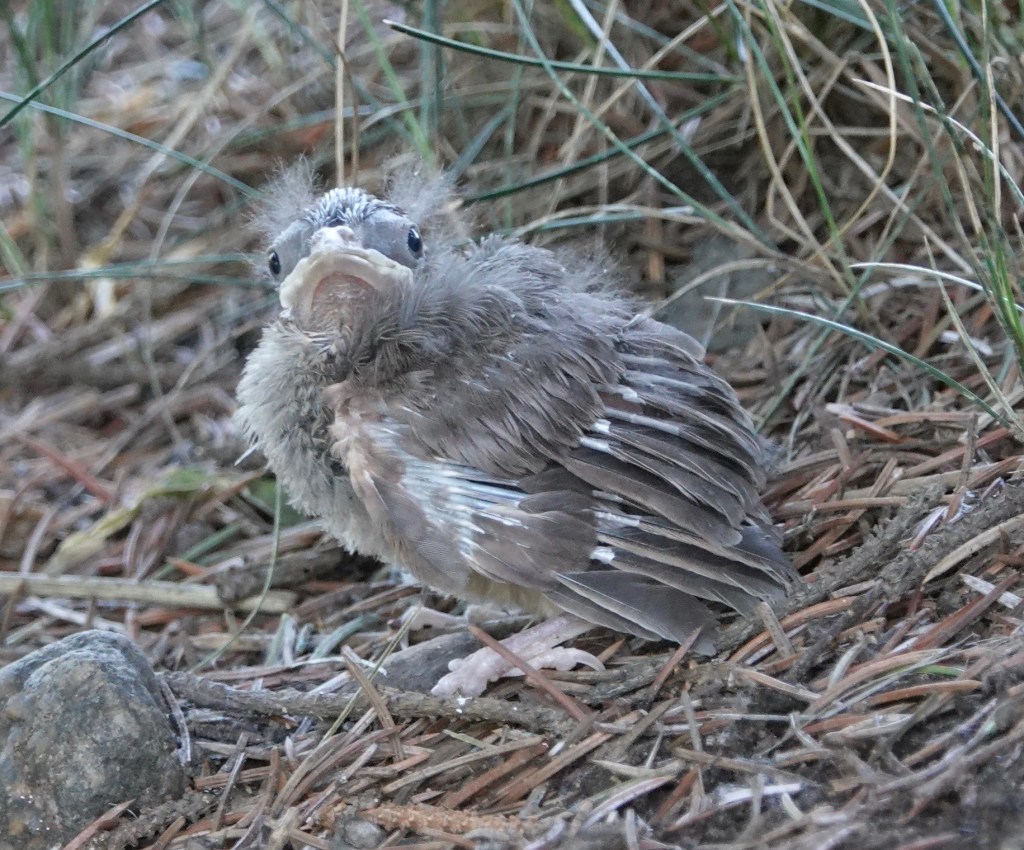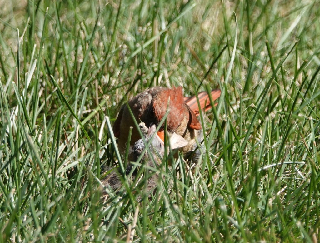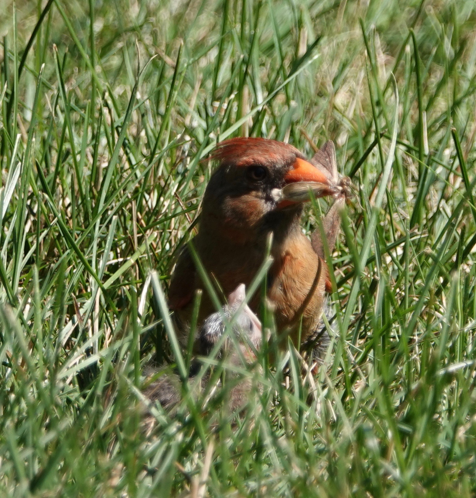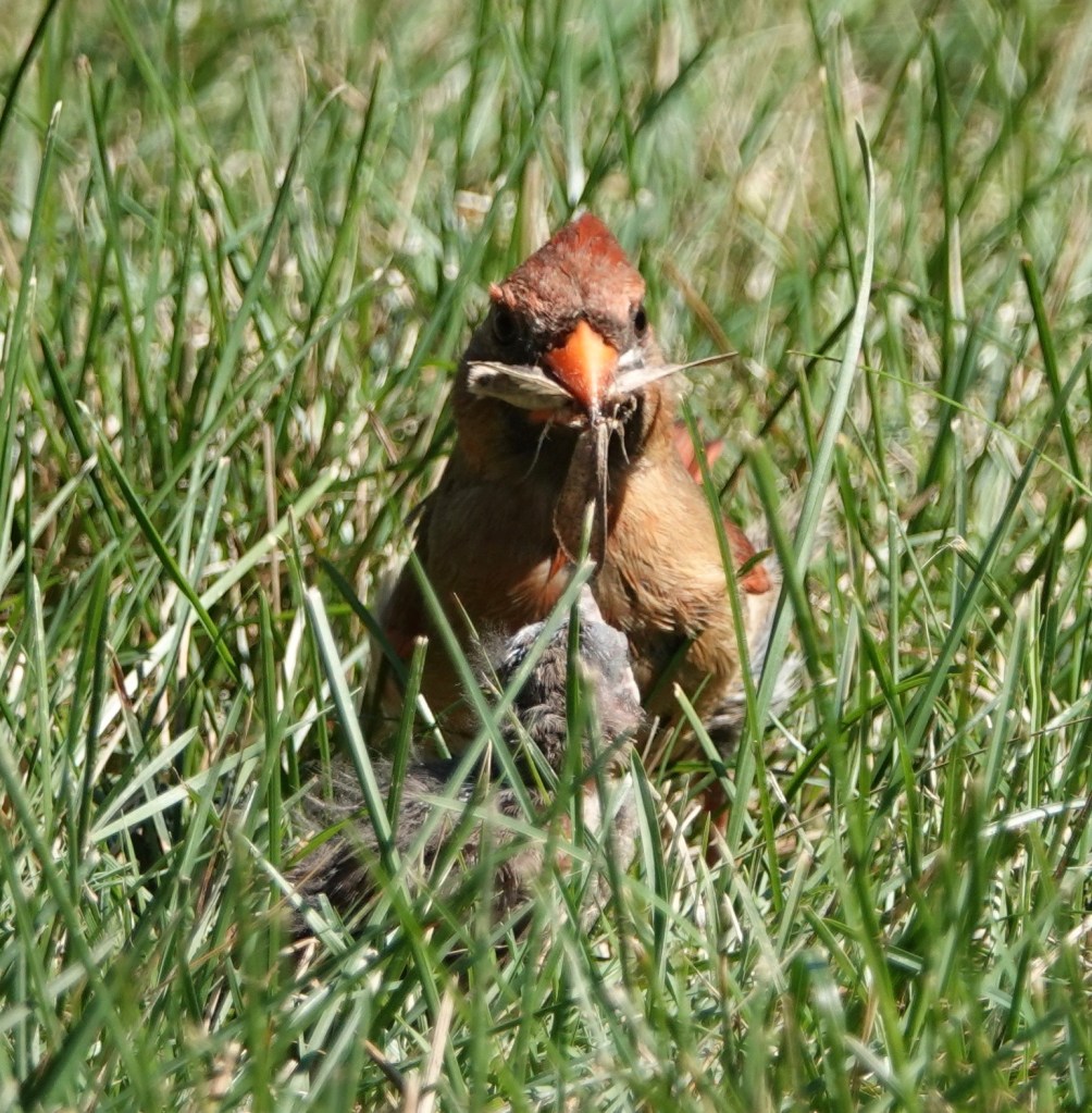 Every spring bird rescue places are inundated with nestlings/fledglings like this because well-meaning folks think they’re in trouble. They’re not, really, unless there’s a cat about. It’s actually normal for them to be out of the nest at this stage. As witnessed here, the parents are still feeding them.