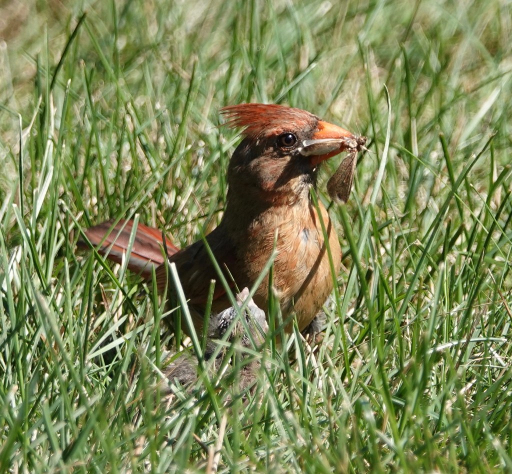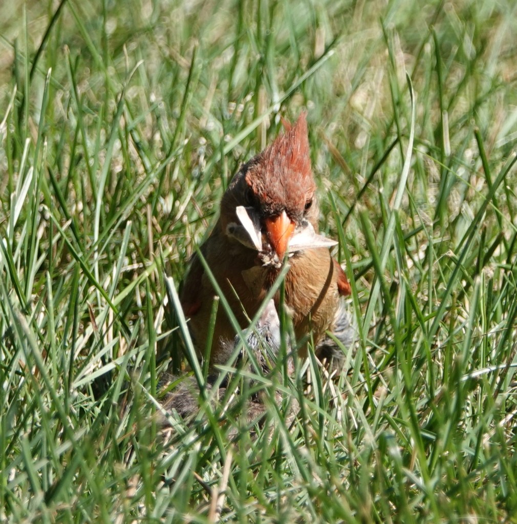A baby Northern Cardinal. Clammed up upon seeing me.