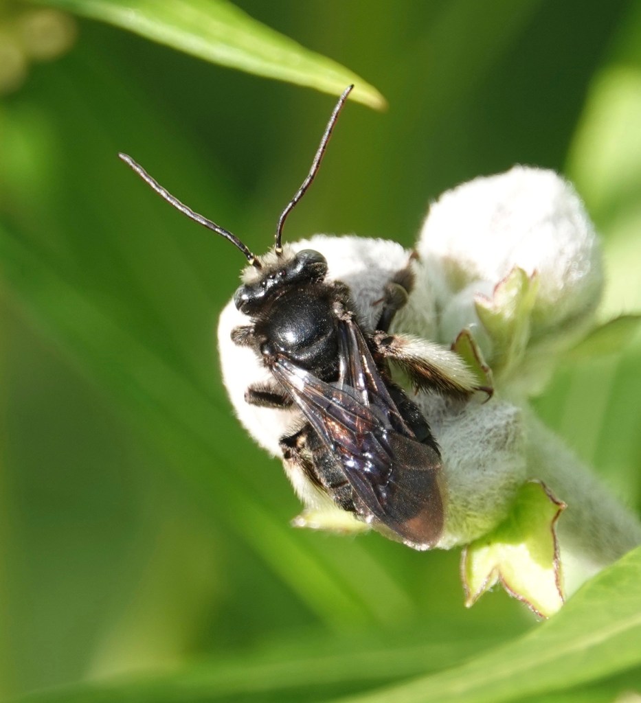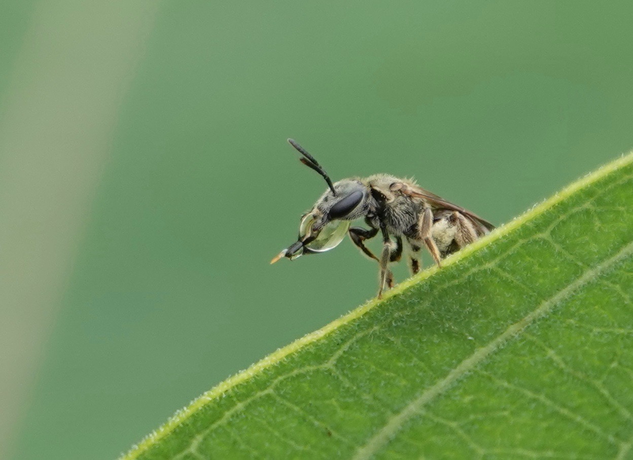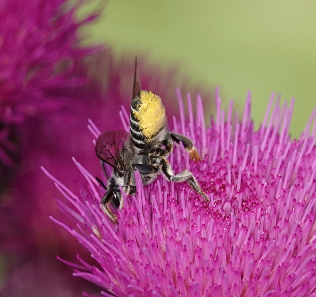 One of the leaf-cutters. Megachile genus bees carry pollen on their abdomen.