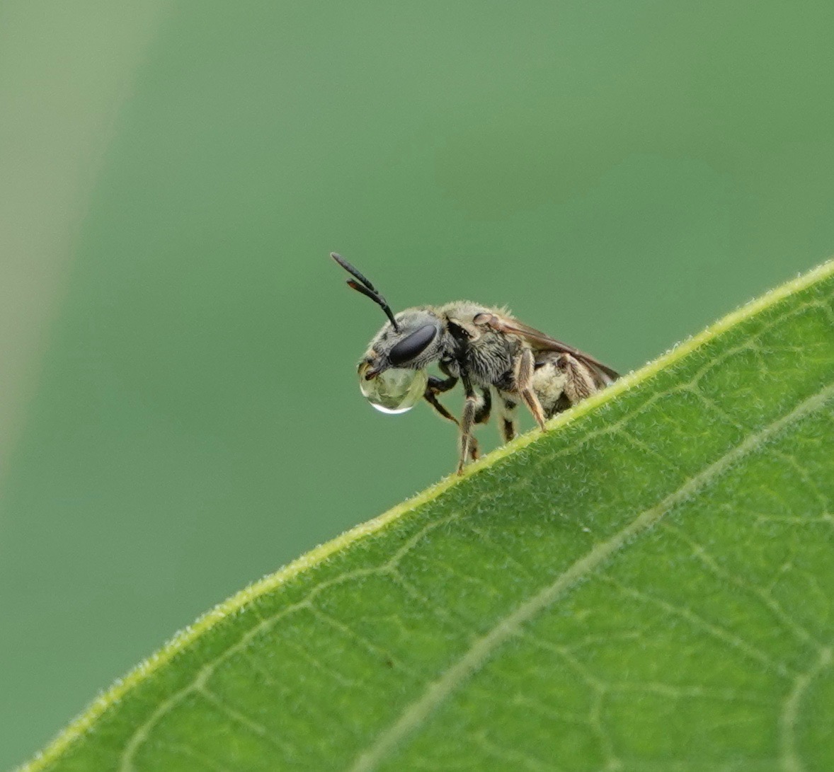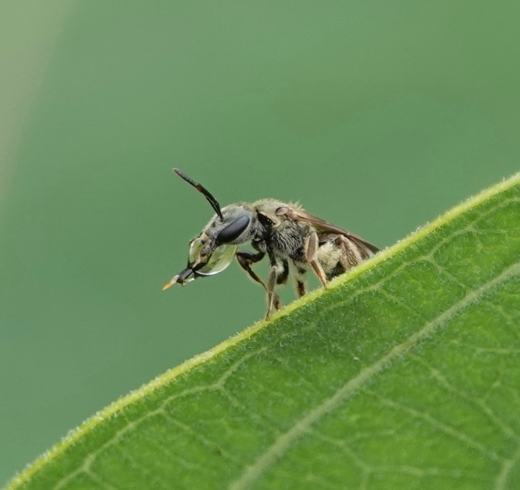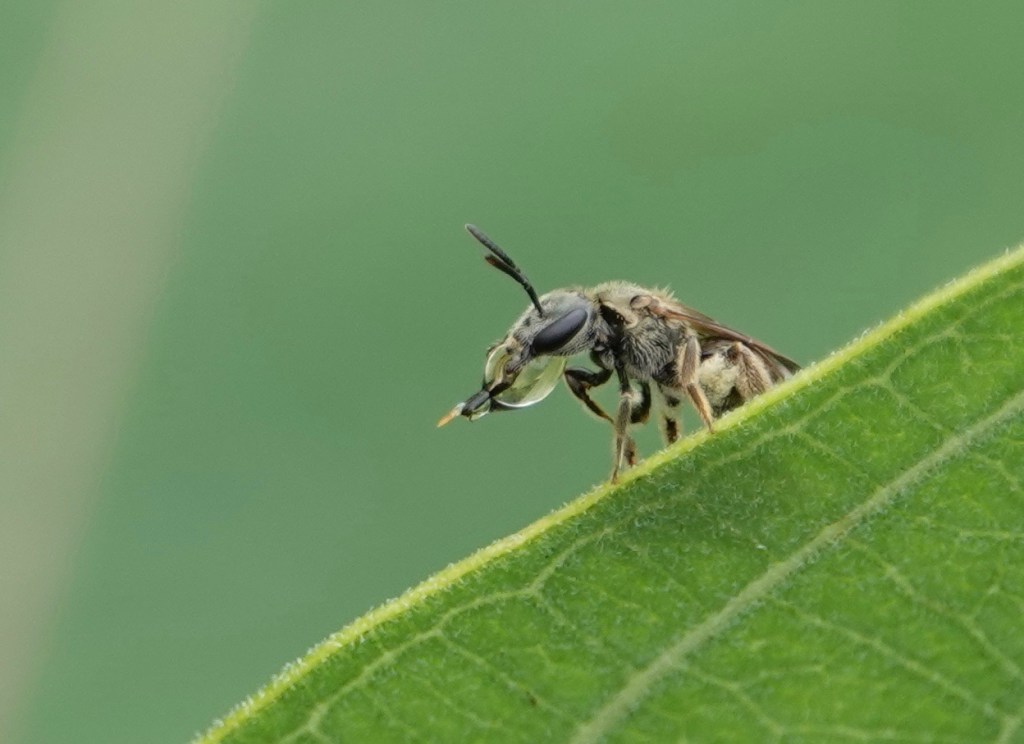Is this a drop of water or nectar? Either way, this bee’s very long tongue was shooting through it over and over, lapping it up. I guess…