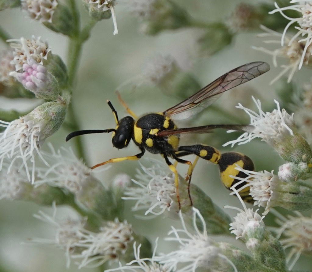 Eumenes something-or-other-should-be-distinctive, one of the pottery and mason wasps. A thing of beauty is a joy forever.