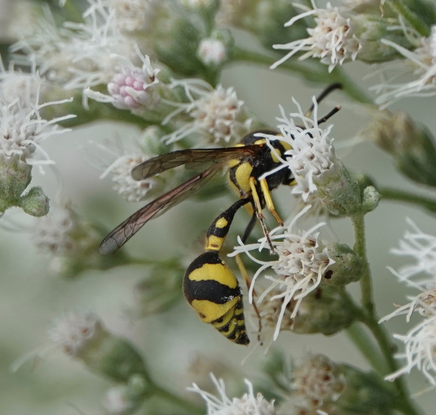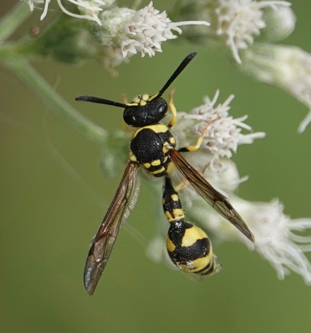 Eumenes something-or-other-should-be-distinctive, one of the pottery and mason wasps. A thing of beauty is a joy forever.