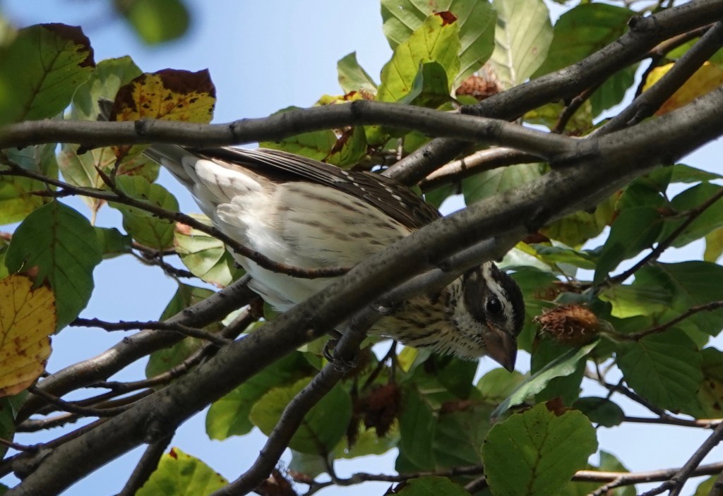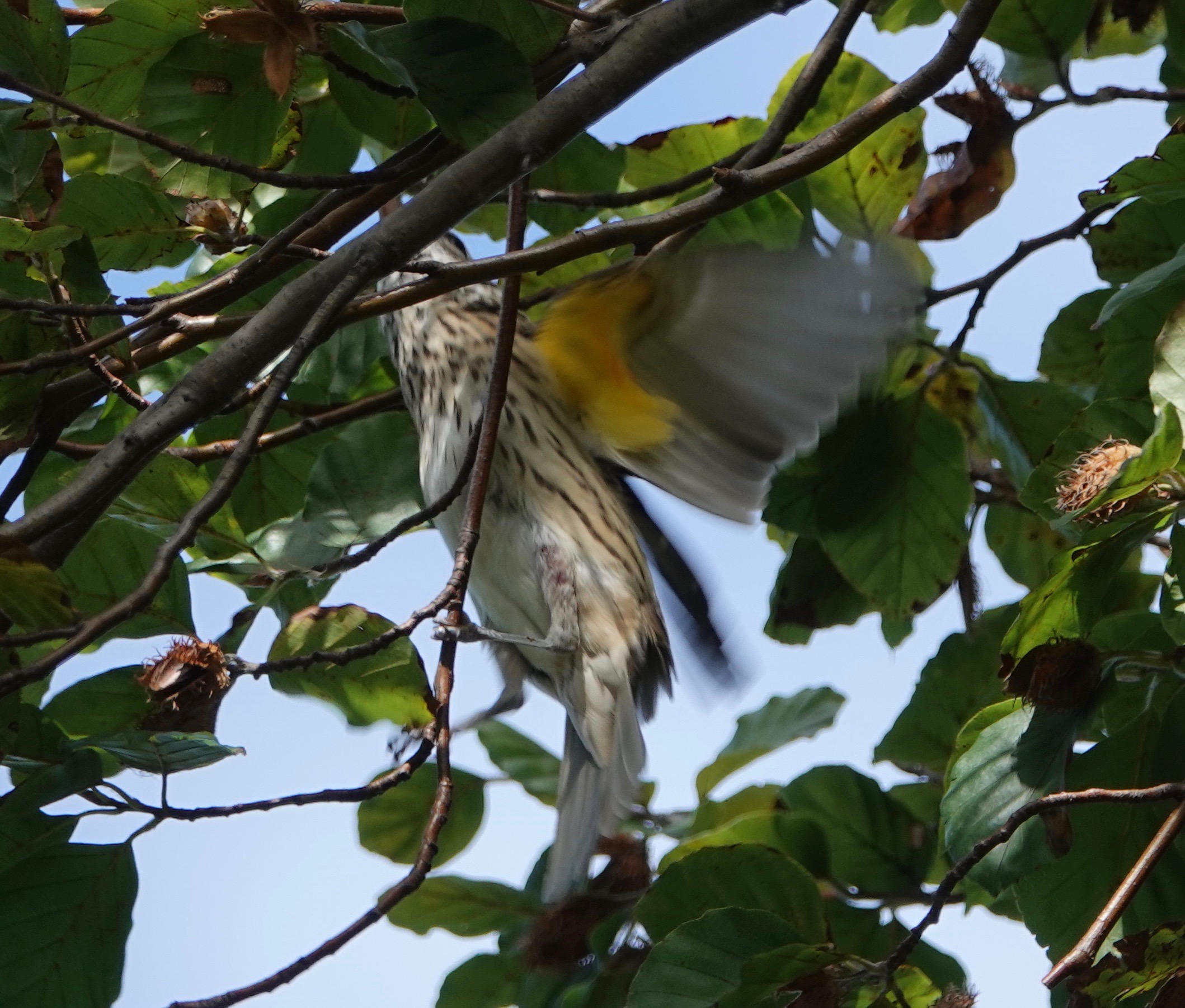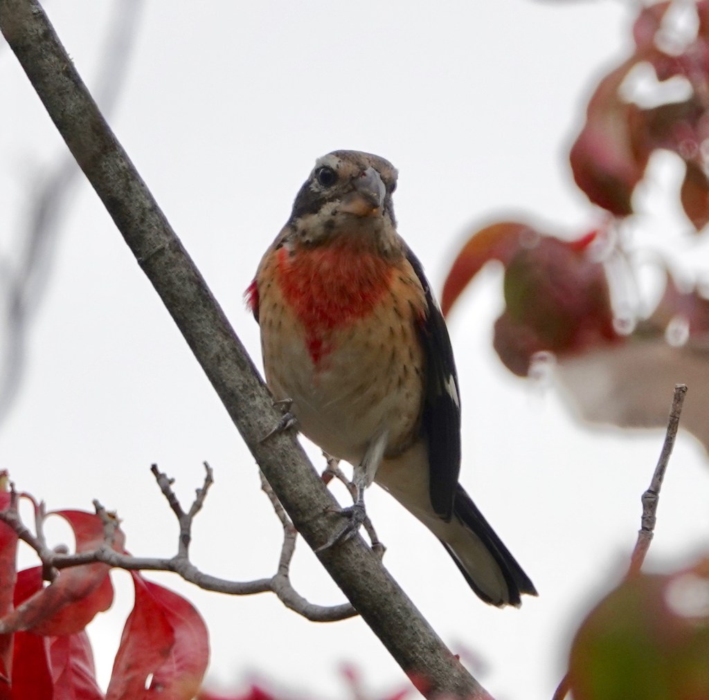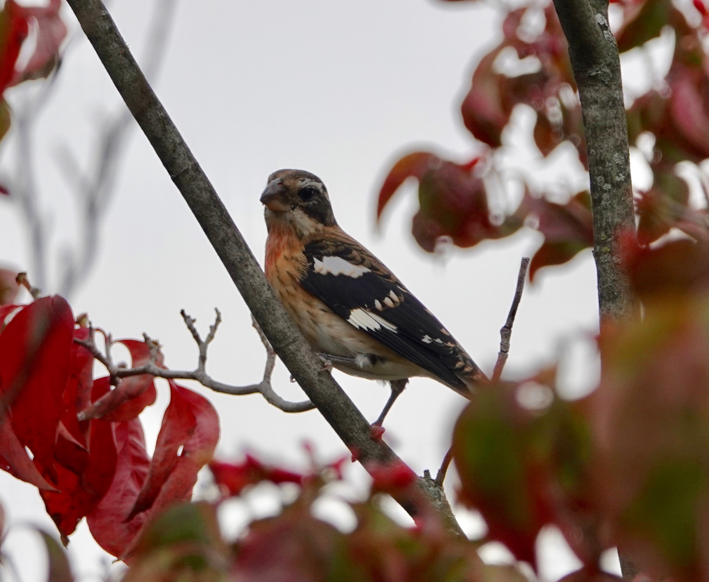 Males are pinkish-red under there. This one and several others are scarfing up dogwood fruits.