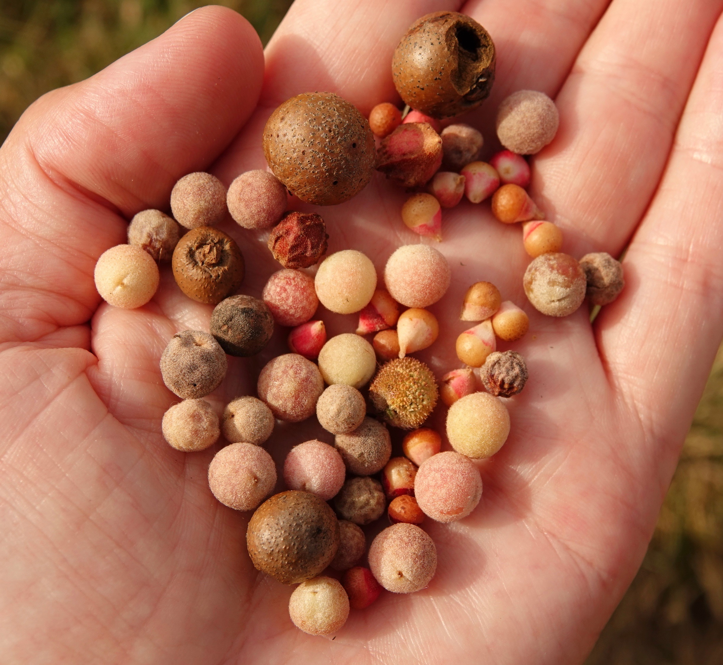 You may be-galled out, but I’m certainly not. All of the above were gleaned from under a great white oak, the mother (?) of galls, on October 10. Five species of gall wasps are represented here.