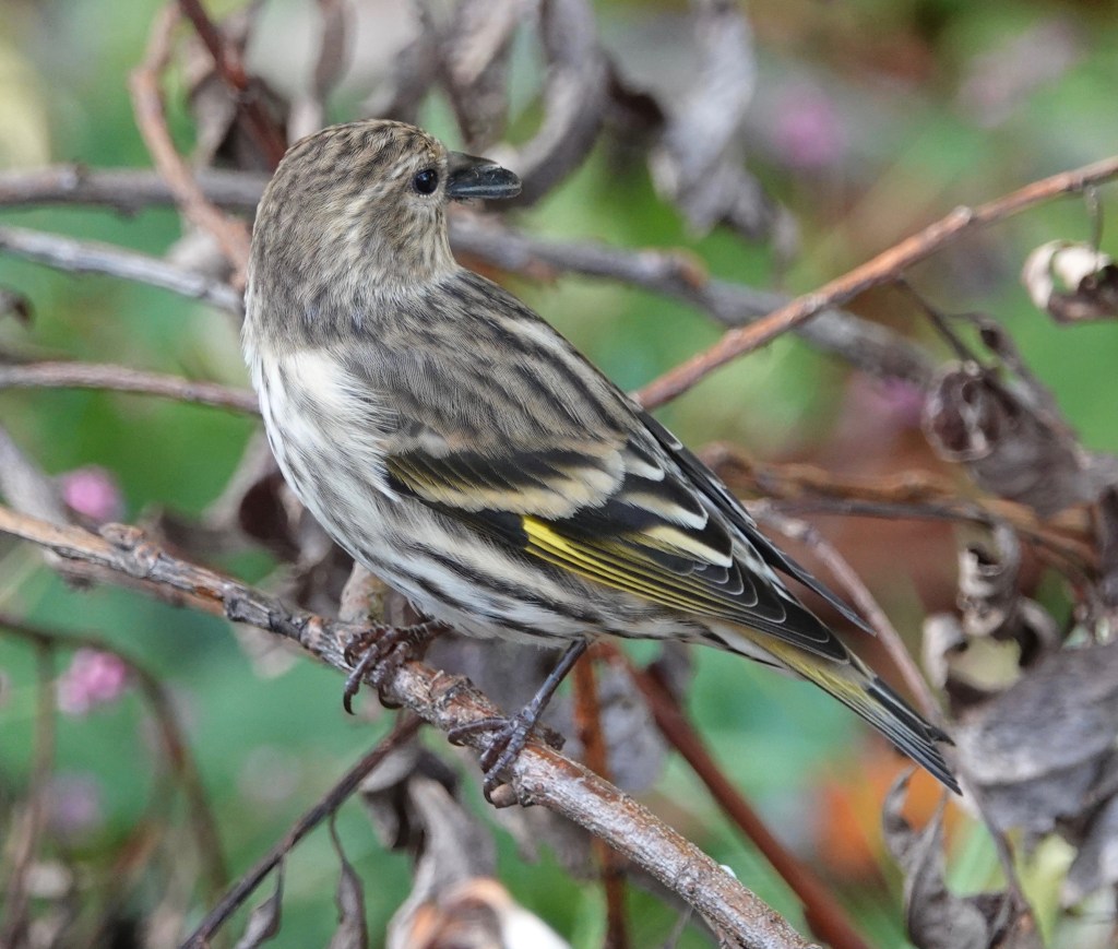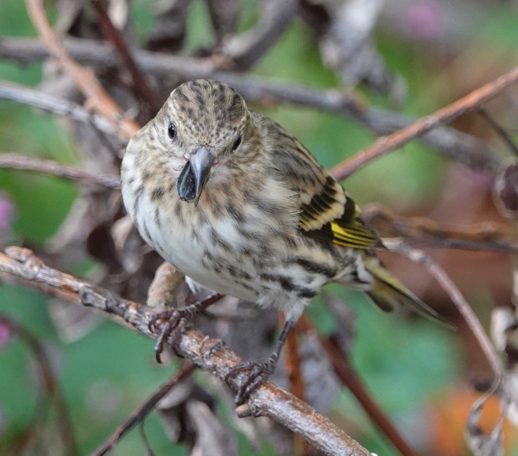 Pine Siskins, and more sunflower seeds. Bit of a challenge for these fine bills, but the Siskins are swarming around the feeders in Dell Water. It’s an extraordinary year for Siskins down here… meaning it’s a bad year up there.