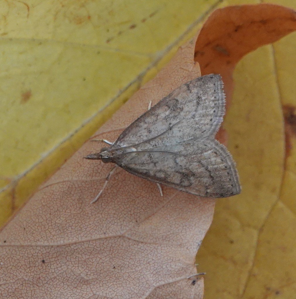 Another regular sighting, Celery Leaftier Moth (Udea rubigalis).