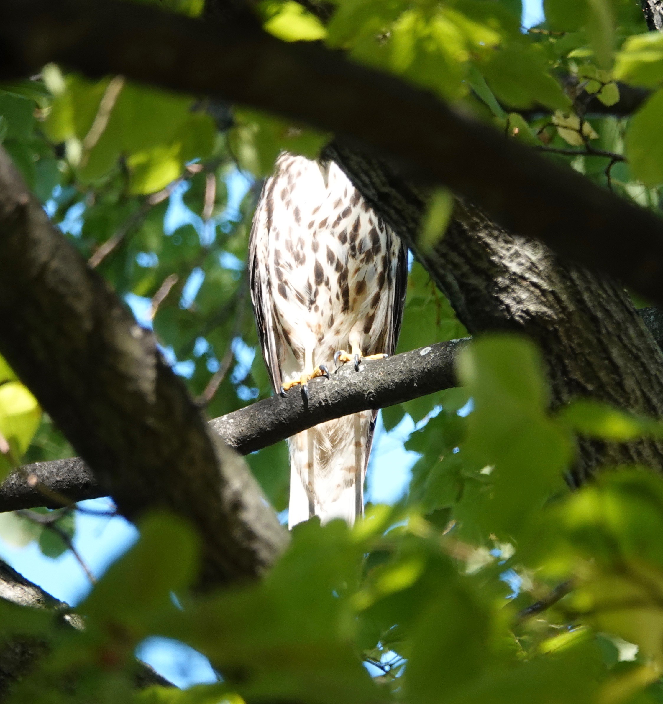 By noon yesterday, the ailanthus, which overtopped four stories and a parapet, was cut down and run through the chipper. Didn’t see that coming. Over the years, the Brooklyn Kestrels have frequently resorted to this tree. Cooper’s Hawks and Red-tailed Hawks (a bit wobbly on this upper branches!) have joined Merlins there as well as the usual local suspects, Blue Jays, Northern Mockingbirds, Starlings, Mourning Doves…