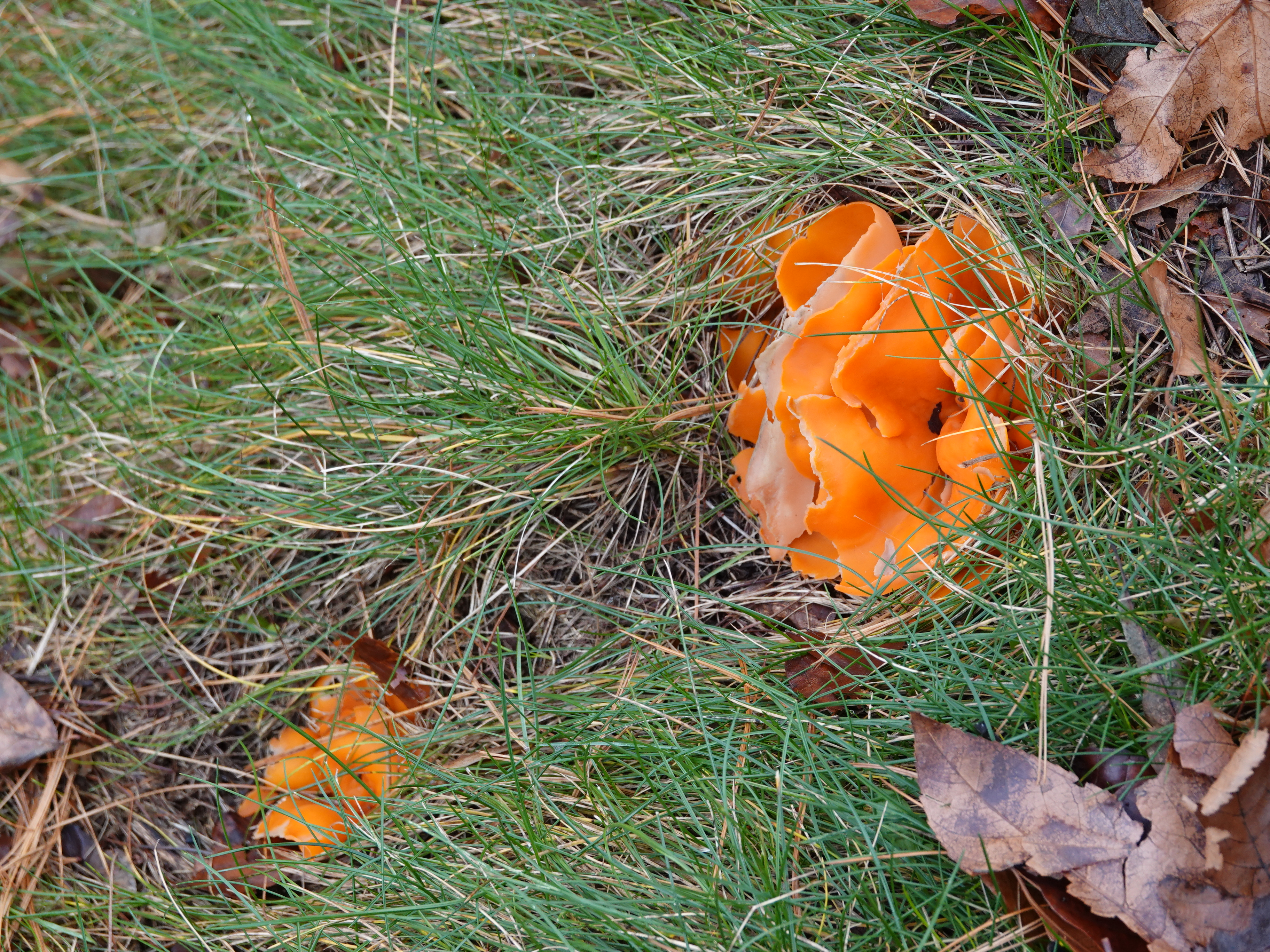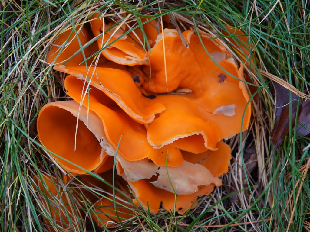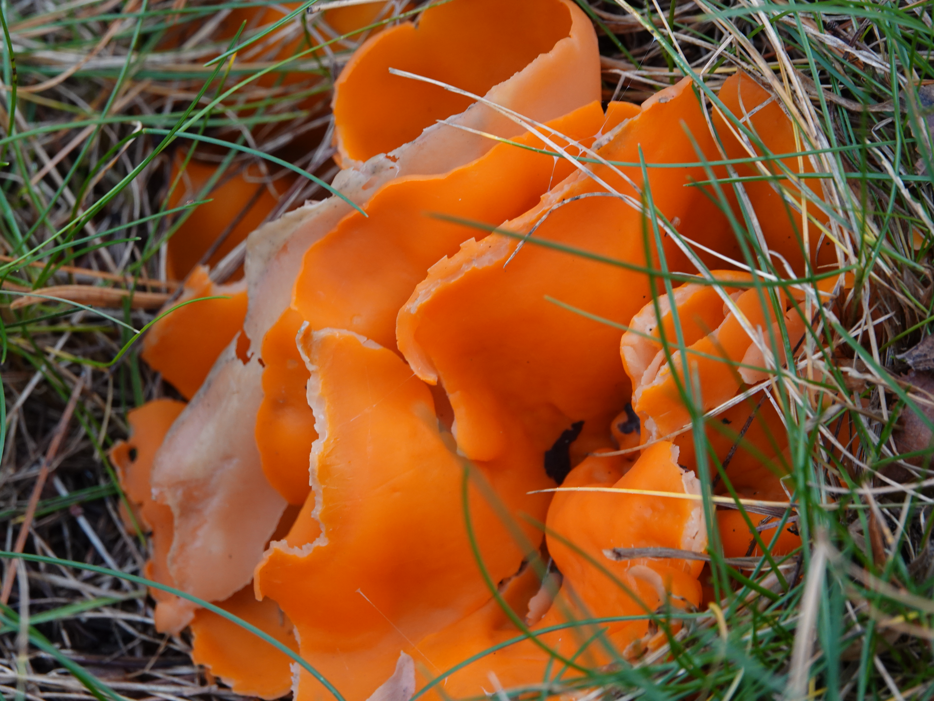 This sure jumps out at you, doesn’t it? Orange Peel Fungus (Aleuria aurantia).