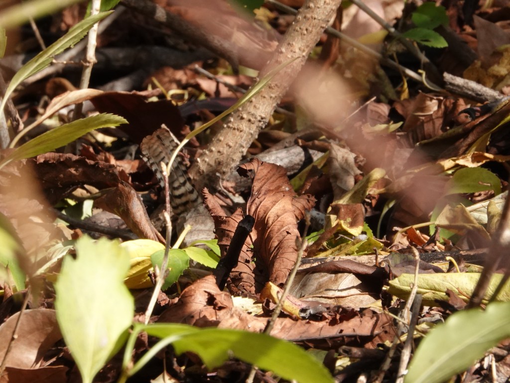 Some five minutes’ vigil, however, ended when the bird popped up to the top of the tangle of thicket whose floor they were rummaging in.