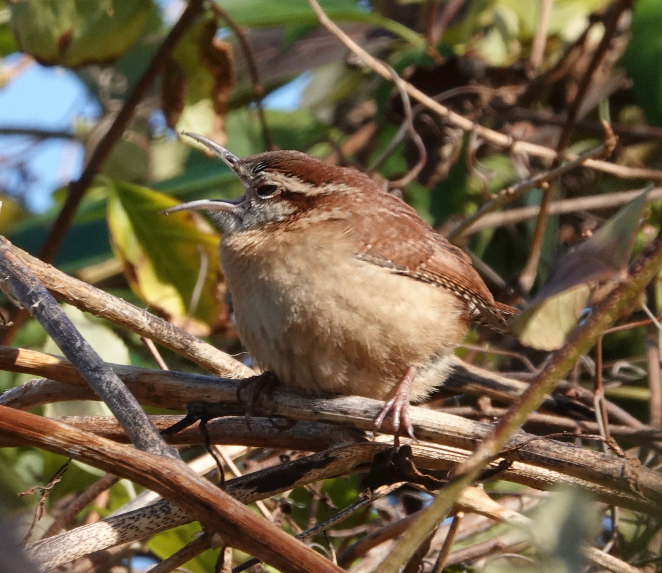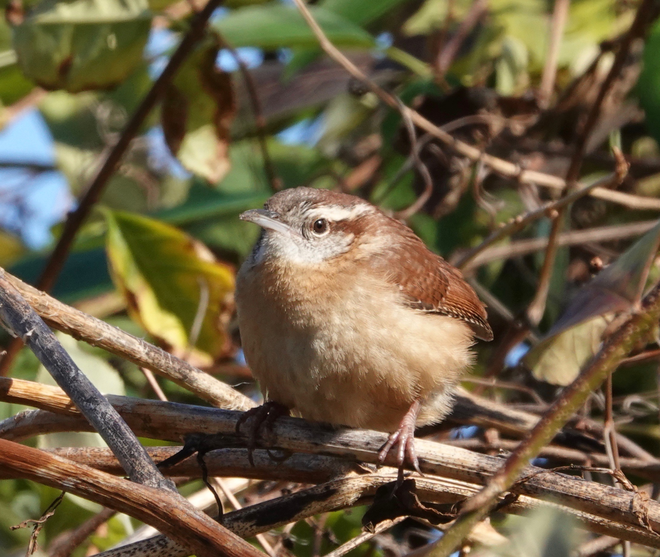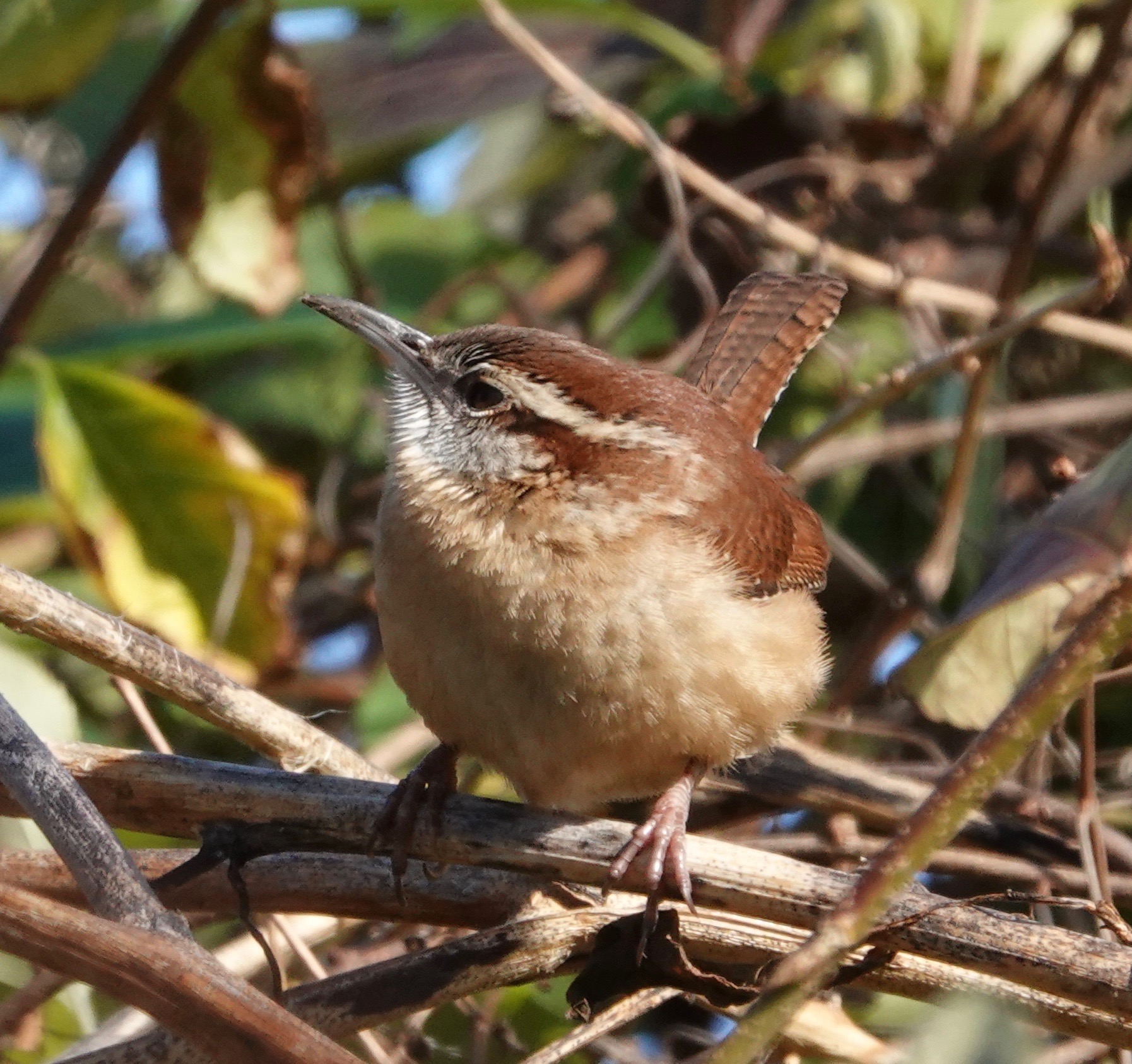 Not an atypical look at a wren in typical habitat. Do you see the underside of the Carolina’s tail?