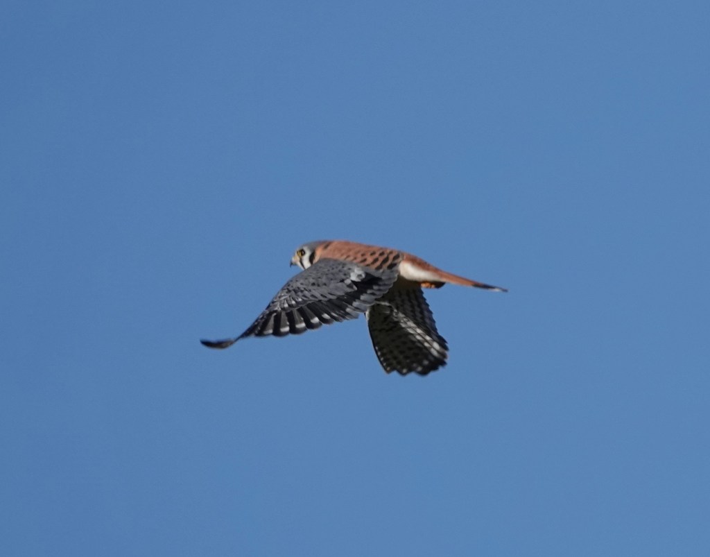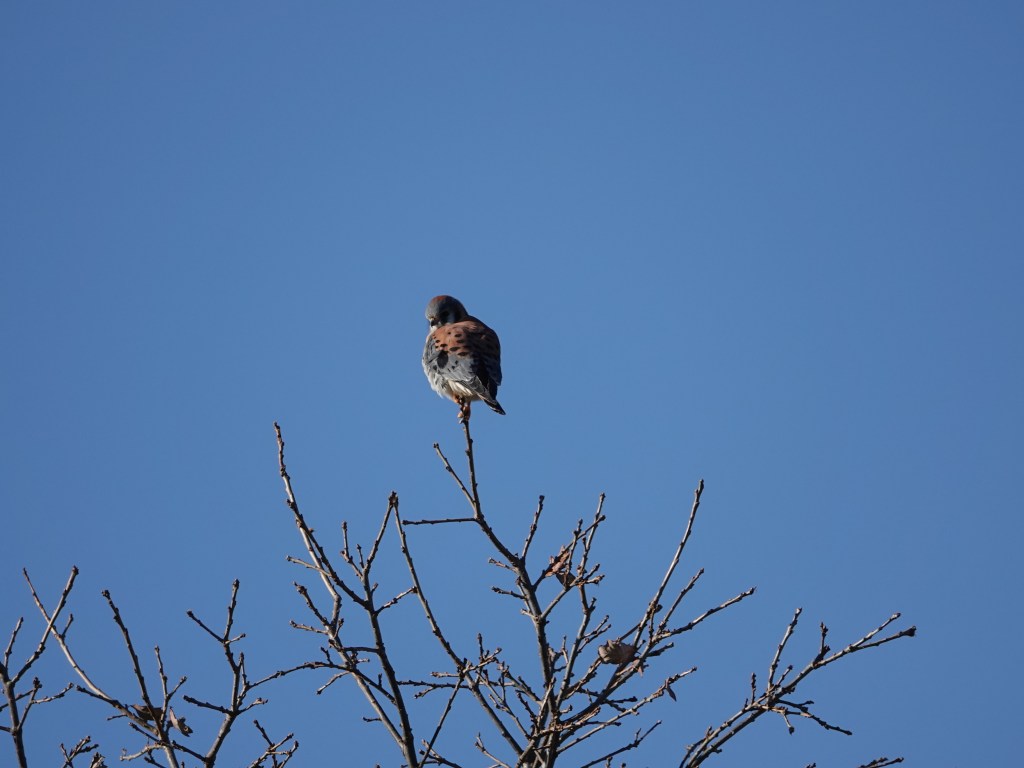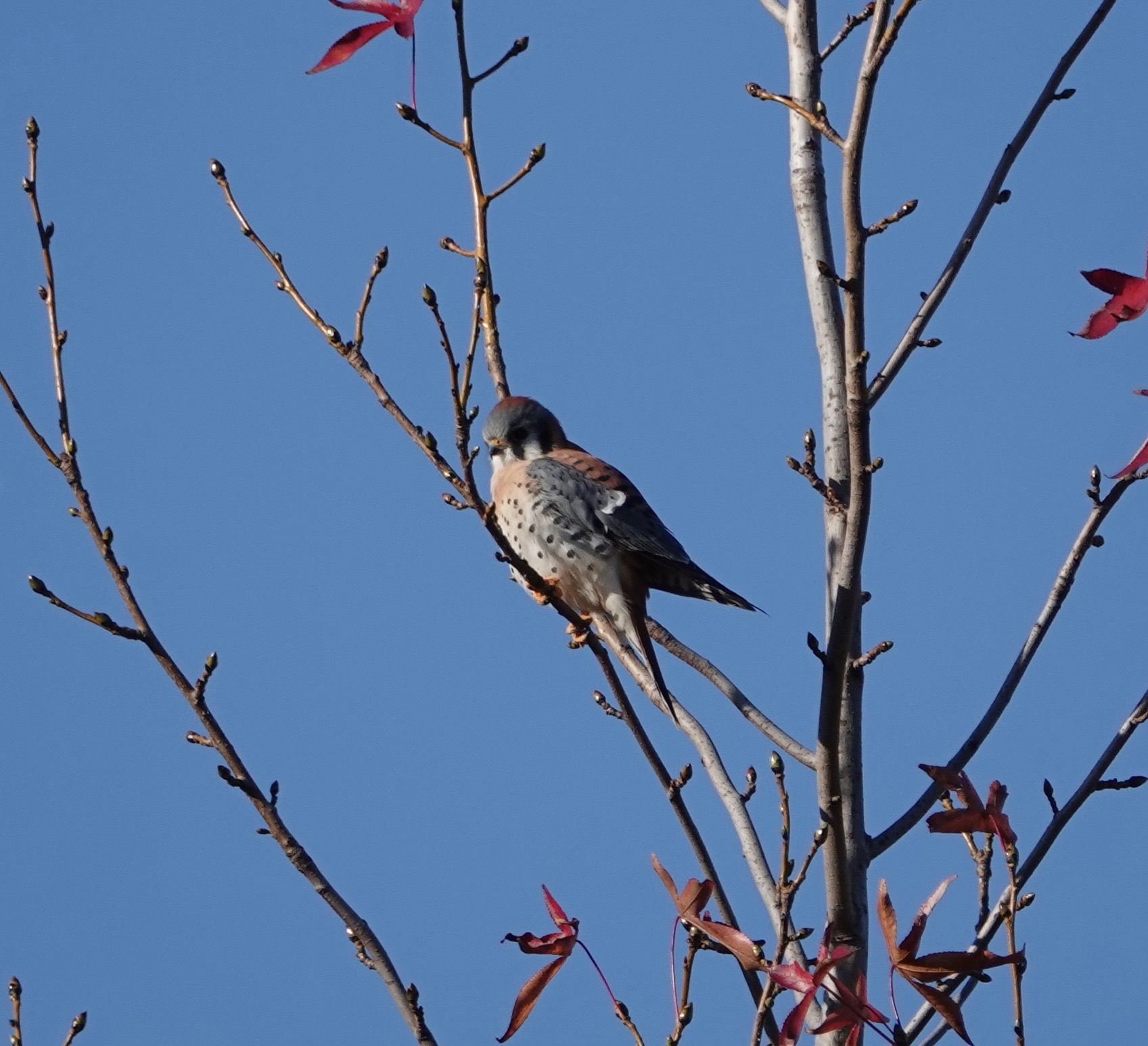 The slope of the public lot in Green-Wood is sprinkled with trees. Cornered by two roads beyond the fence, it’s a cut-de-sac that has been favored for years by American Kestrels as a hunting ground.